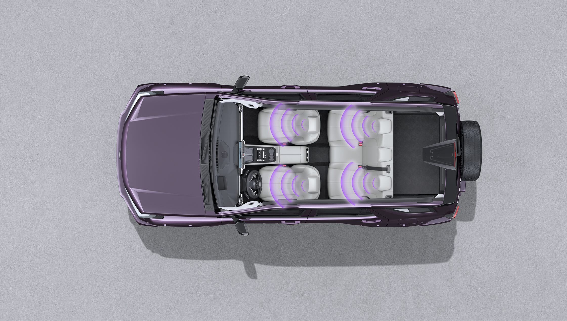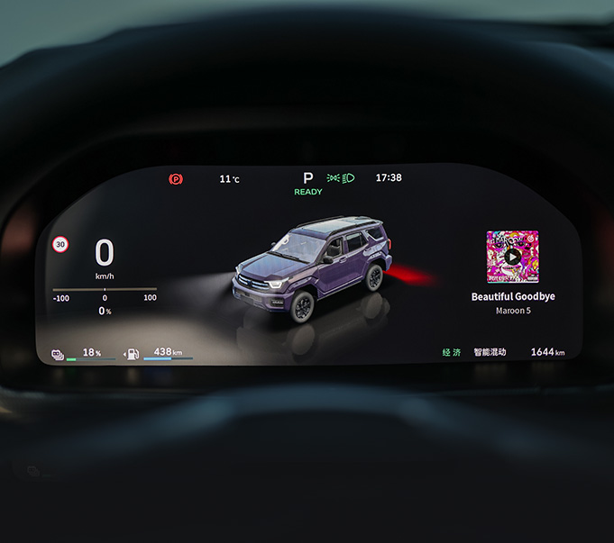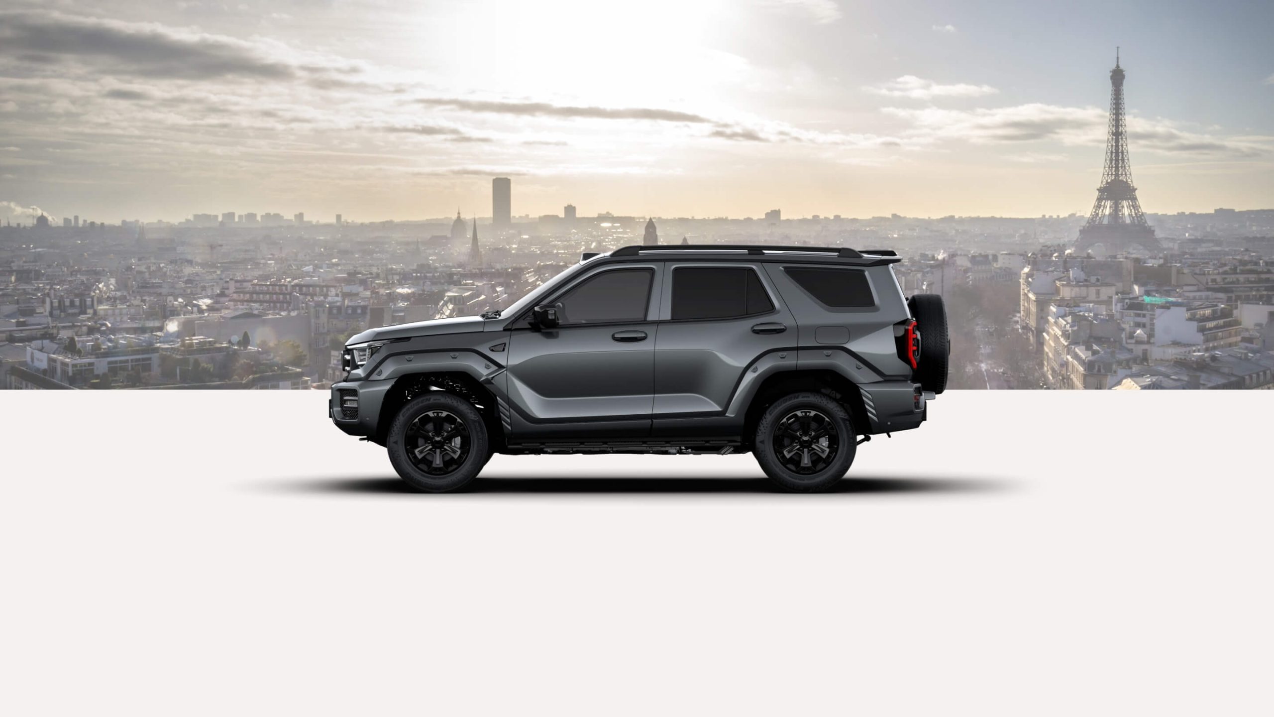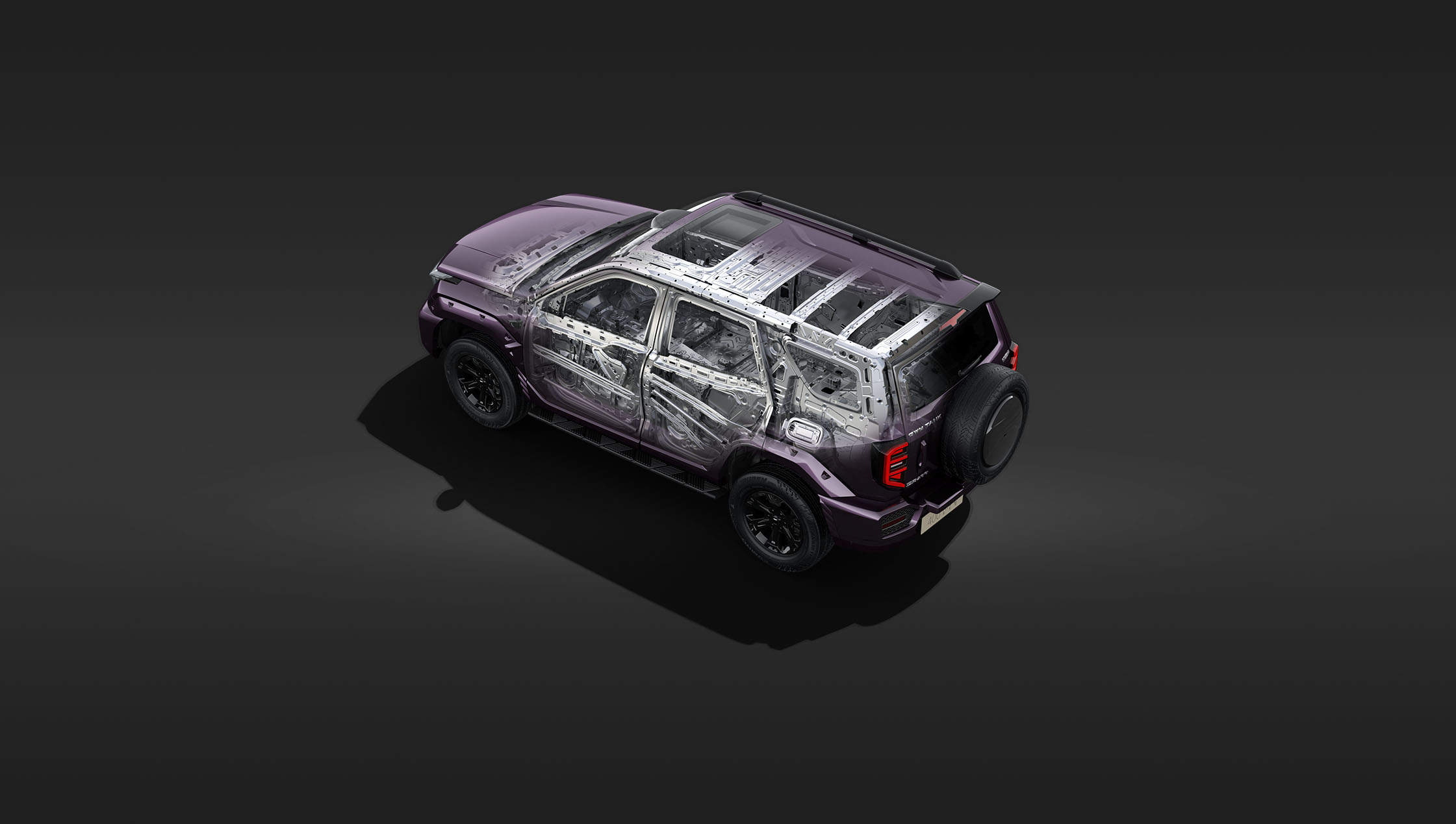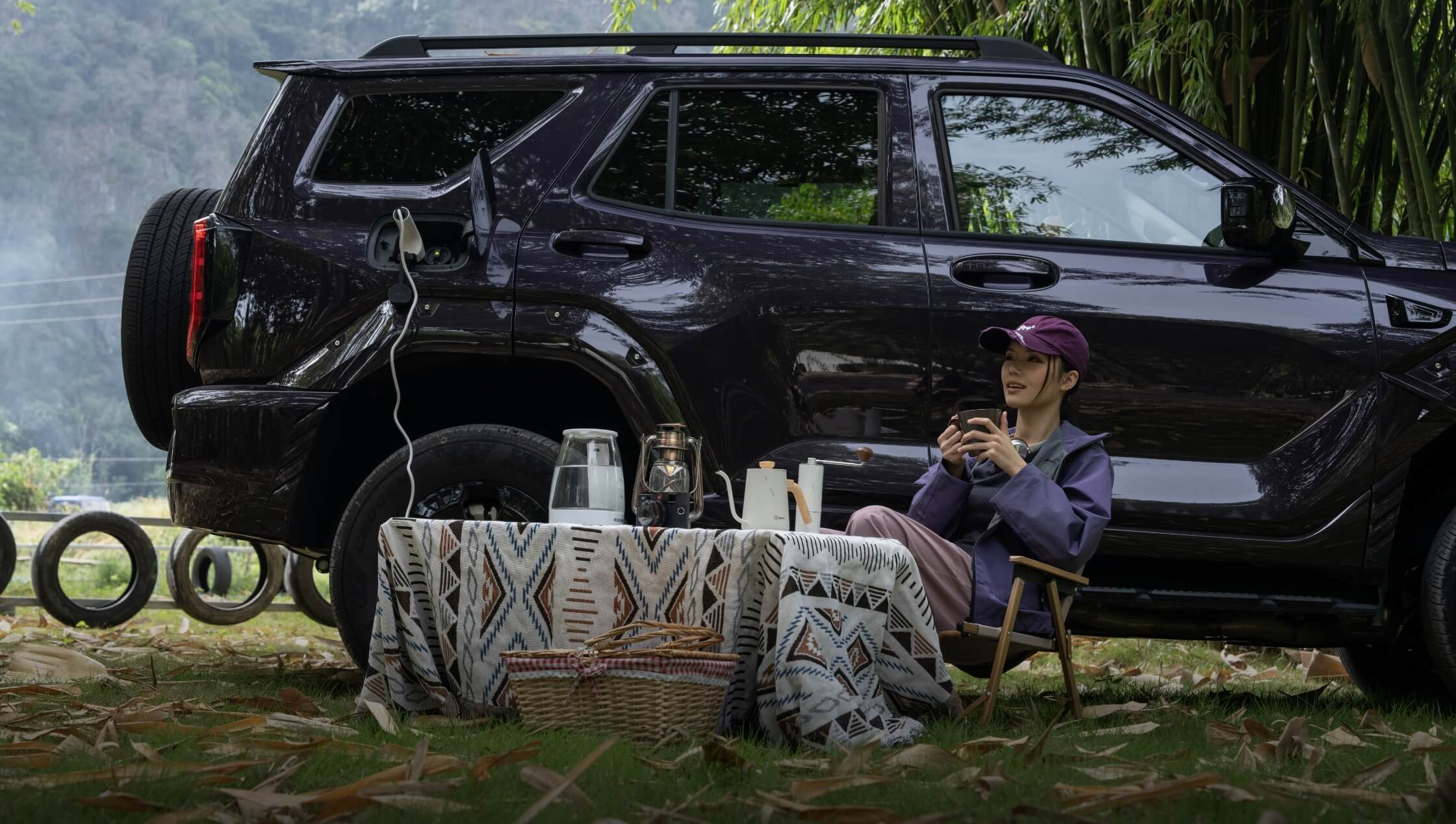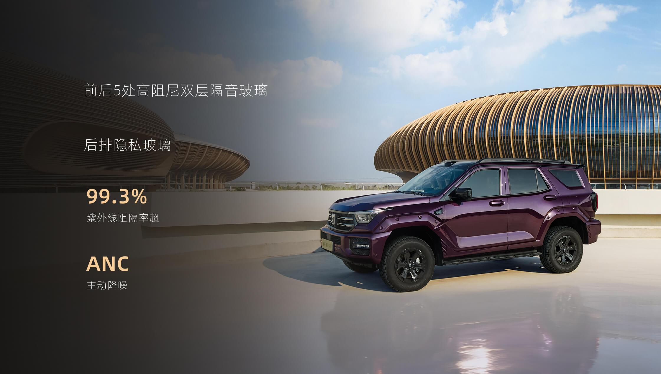 สีตัวถัง 4 เฉด: ดำ Phantom / เงิน Wing / เทา Nebula / ม่วง Dunhuang (สีโปรโมต) ท้ายรถยังคงใช้ ยางอะไหล่แบบแขวนหลัง + ประตูเปิดข้าง สำหรับการเข้าถึงสัมภาระเร็วแบบสายลุย และเพิ่มไฟสัญญาณ ADAS “แถบสีฟ้า” แจ้งเตือนรอบคัน