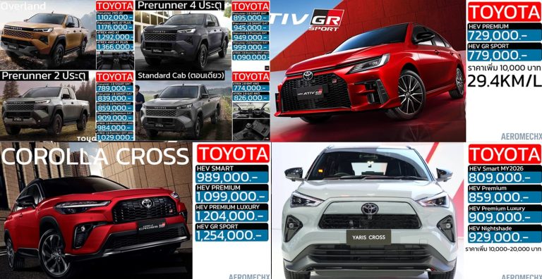 Spread the love … อ่านเพิ่มเติม รวมราคาจำหน่าย TOYOTA โตโยต้า ในประเทศไทย ทุกรุ่นย่อย 2026-2027