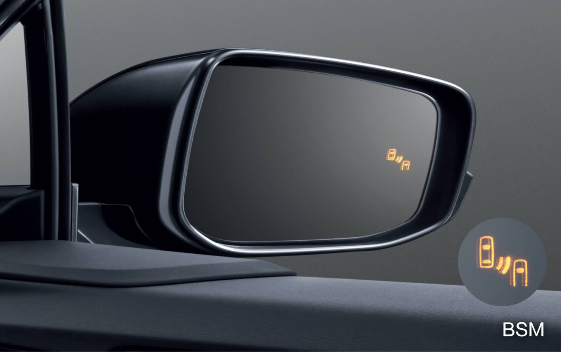 - ระบบช่วยเตือนมุมอับสายตา กระจกมองข้าง (BSM) พร้อมช่วยเตือนขณะถอยรถ RCTA