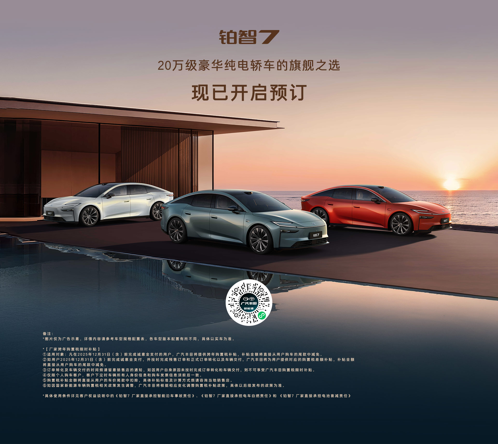 ในงาน Guangzhou Auto Show 2025 วันนี้ Toyota ฝั่งจีน (GAC Toyota) ได้เปิดตัว ซีดานไฟฟ้าขนาดใหญ่ระดับ D-Segment รุ่นใหม่ “Bozhi 7” พร้อมเปิดรับจองอย่างเป็นทางการ โดยตั้งเป้าหมายว่าจะเป็น: