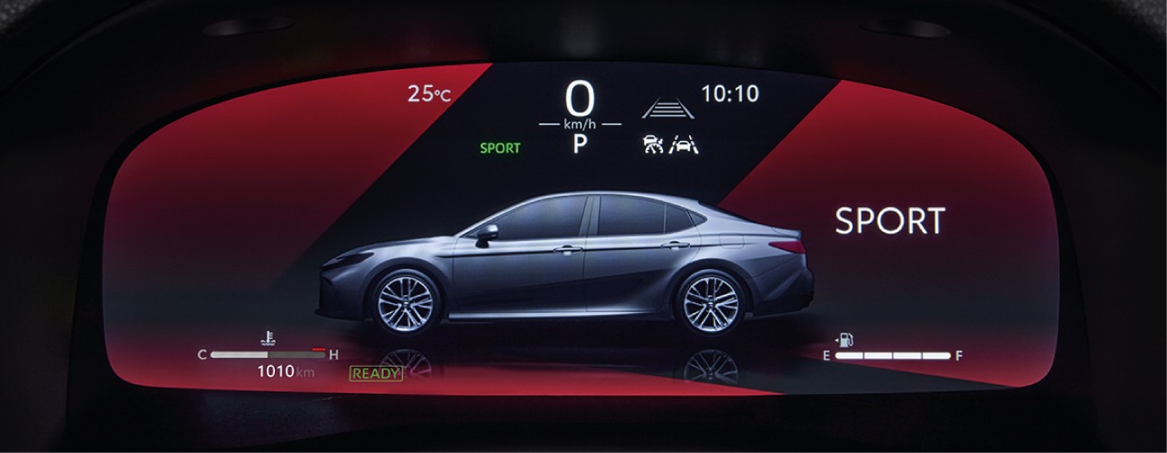มอบรูปลักษณ์ที่โฉบเฉี่ยวและแข็งแรงยิ่งขึ้นให้กับดีไซน์ของซีดานยอดนิยม แผงด้านหน้าแบบหัวค้อนอันโดดเด่นเพิ่มรูปลักษณ์ที่สะอาดตาจนต้องหันมองอย่างแน่นอน ทุกเกรดจะมีไฟหน้า LED แบบบาง ไฟเดย์ไลท์ และไฟท้าย โตโยต้า คัมรี่ มาพร้อมมาตรฐาน Blind Spot Monitor ที่ช่วยตรวจจับและเตือนรถที่กำลังเข้าใกล้หรืออยู่ในเลนที่อยู่ติดกัน พร้อม Rear Cross-Traffic Alert เพิ่มความอุ่นใจโดยช่วยตรวจจับรถที่เข้ามาจากด้านใดด้านหนึ่งในขณะที่ ถอยกลับและแจ้งเตือนคุณด้วยคำเตือนด้วยภาพและเสียง