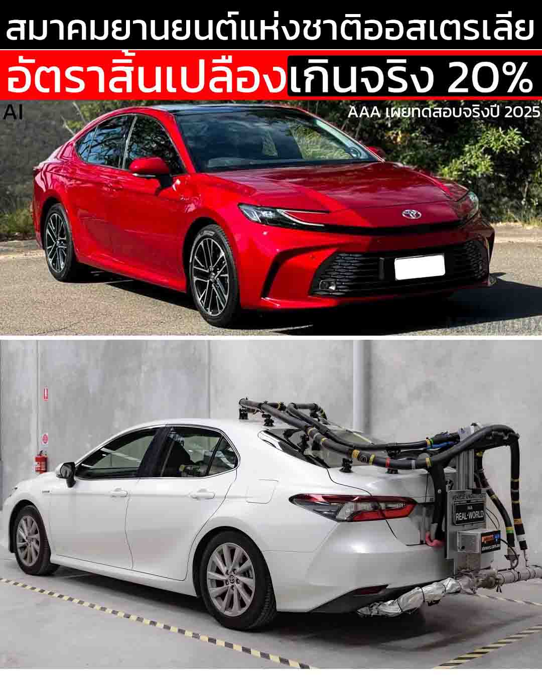 AAA เผยผลทดสอบจริงปี 2025 ชี้หลายรุ่นกินน้ำมันเกินเคลม Camry Hybrid โดนด้วย!