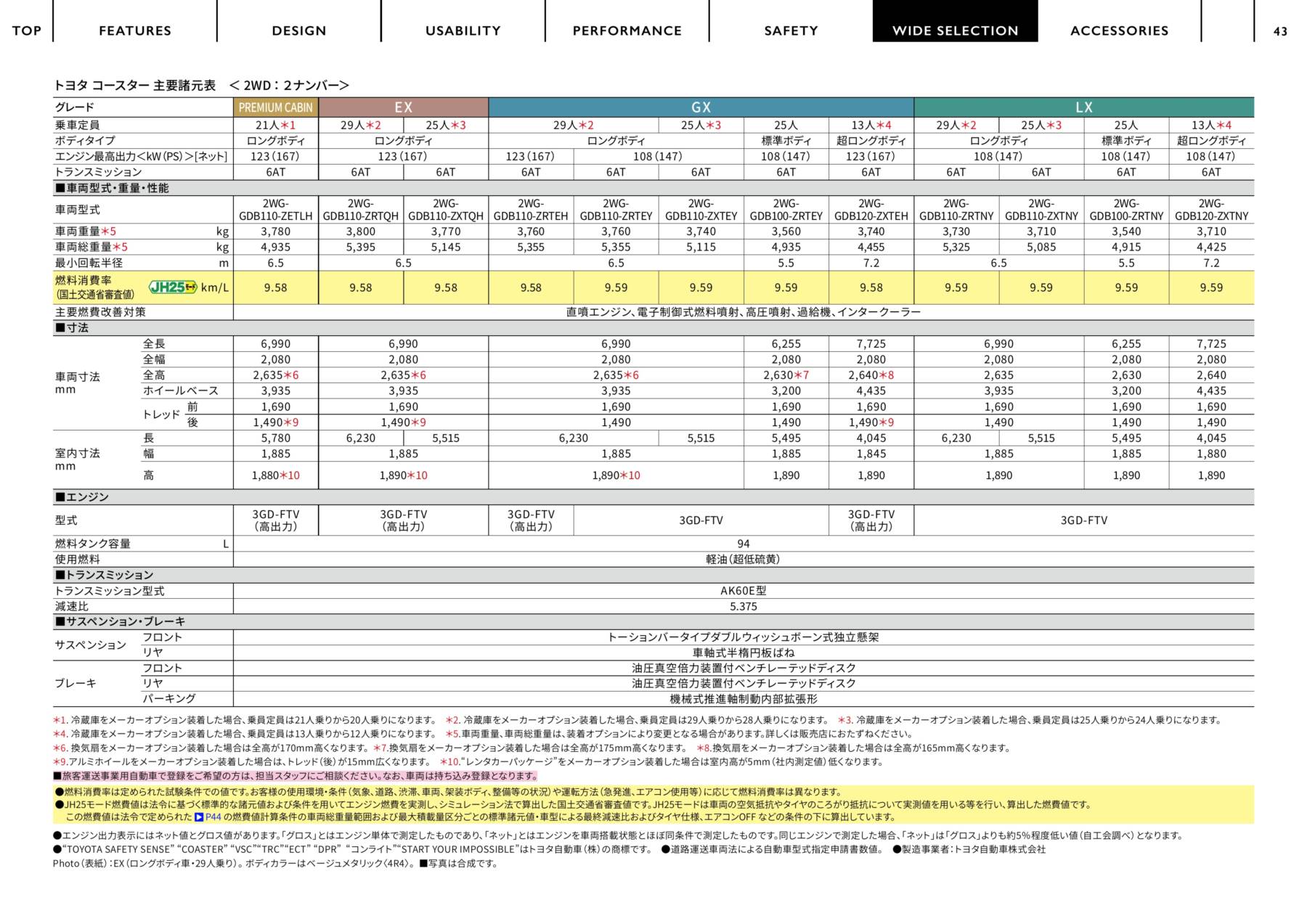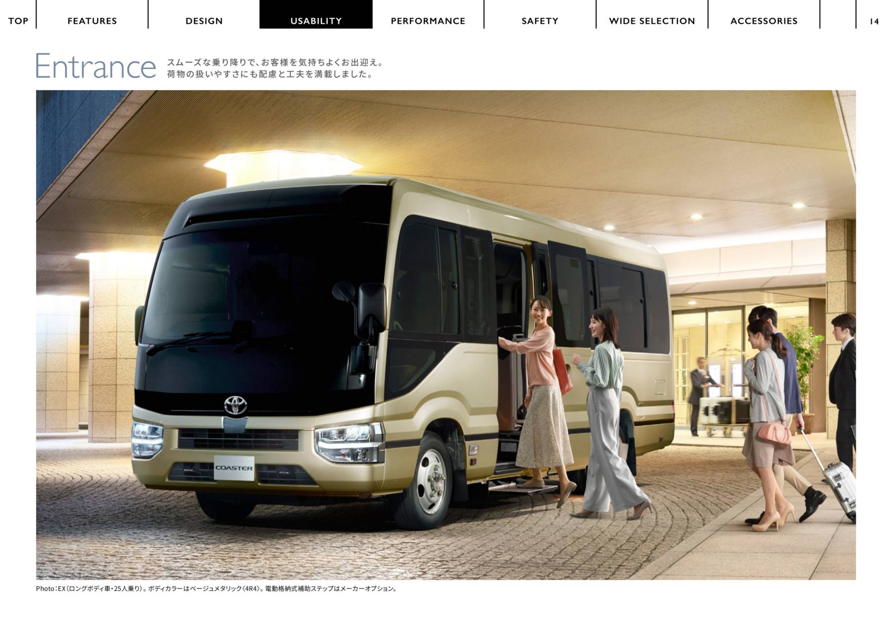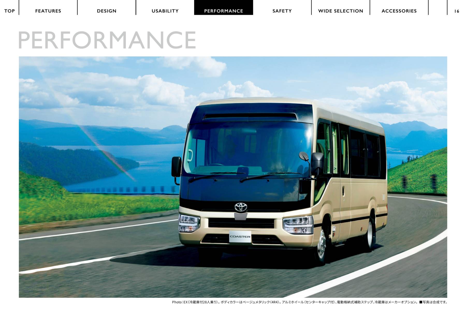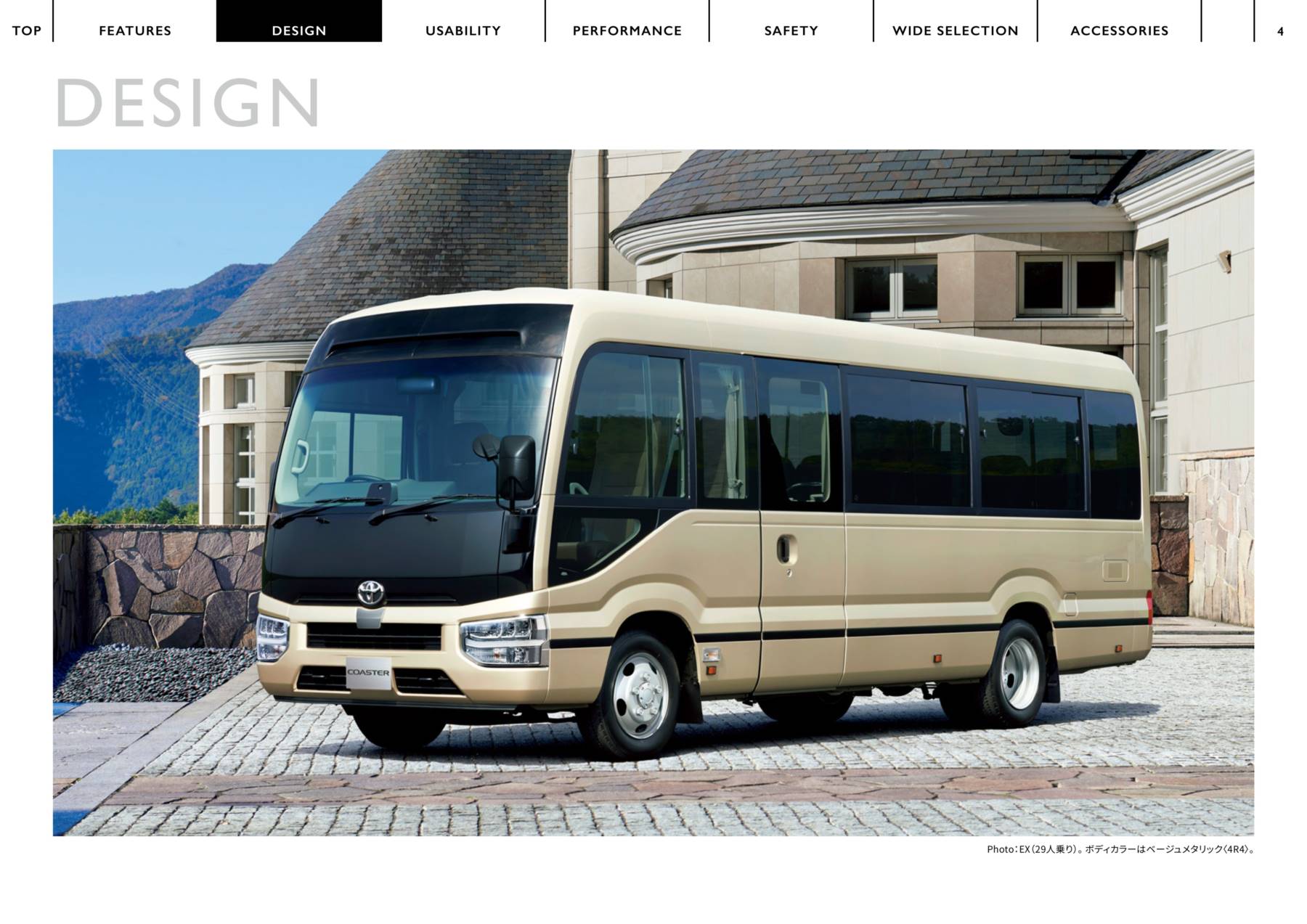 TOYOTA Coaster อัพเกรดในประเทศญี่ปุ่น ได้มีการติดตั้งเครื่องยนต์ดีเซลใหม่ขนาด 3.0 ลิตร (รหัส 3GD-FTV) ที่ให้สมรรถนะการขับเคลื่อนทรงพลัง ด้วยกำลังสูงสุด 123 กิโลวัตต์ และแรงบิดสูงสุด 452 นิวตัน-เมตร (สเปกกำลังสูง) พร้อมทั้งยกระดับสมรรถนะการเบรก ด้วยการติดตั้งดิสก์เบรกขนาด 17 นิ้ว ทั้งด้านหน้าและด้านหลัง