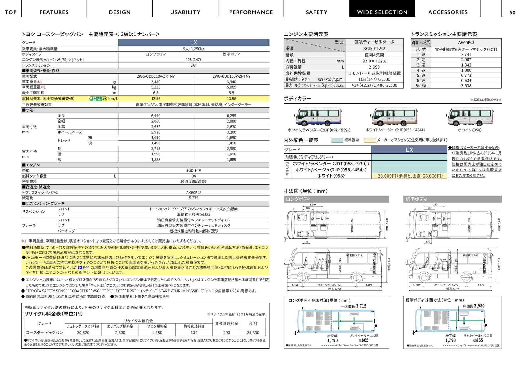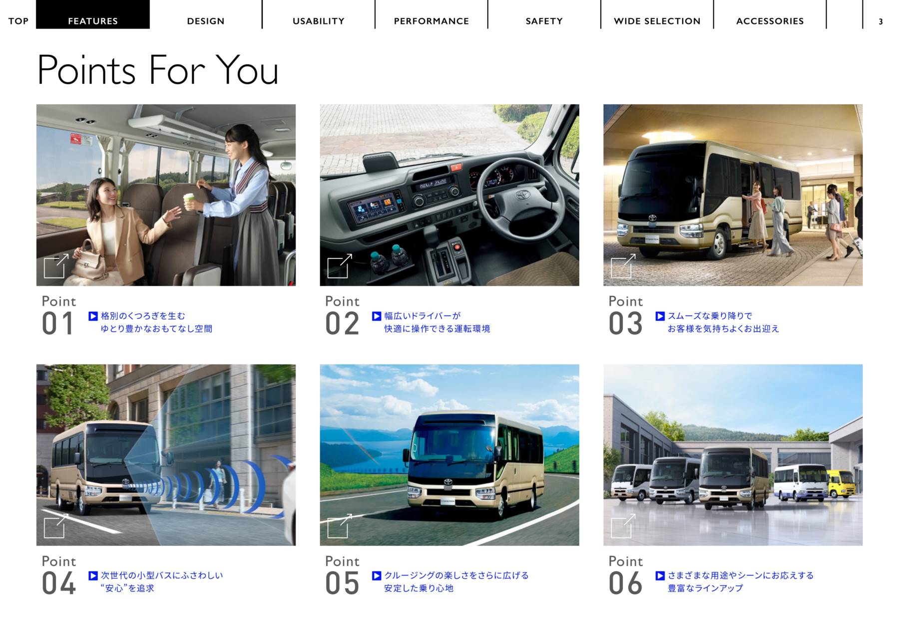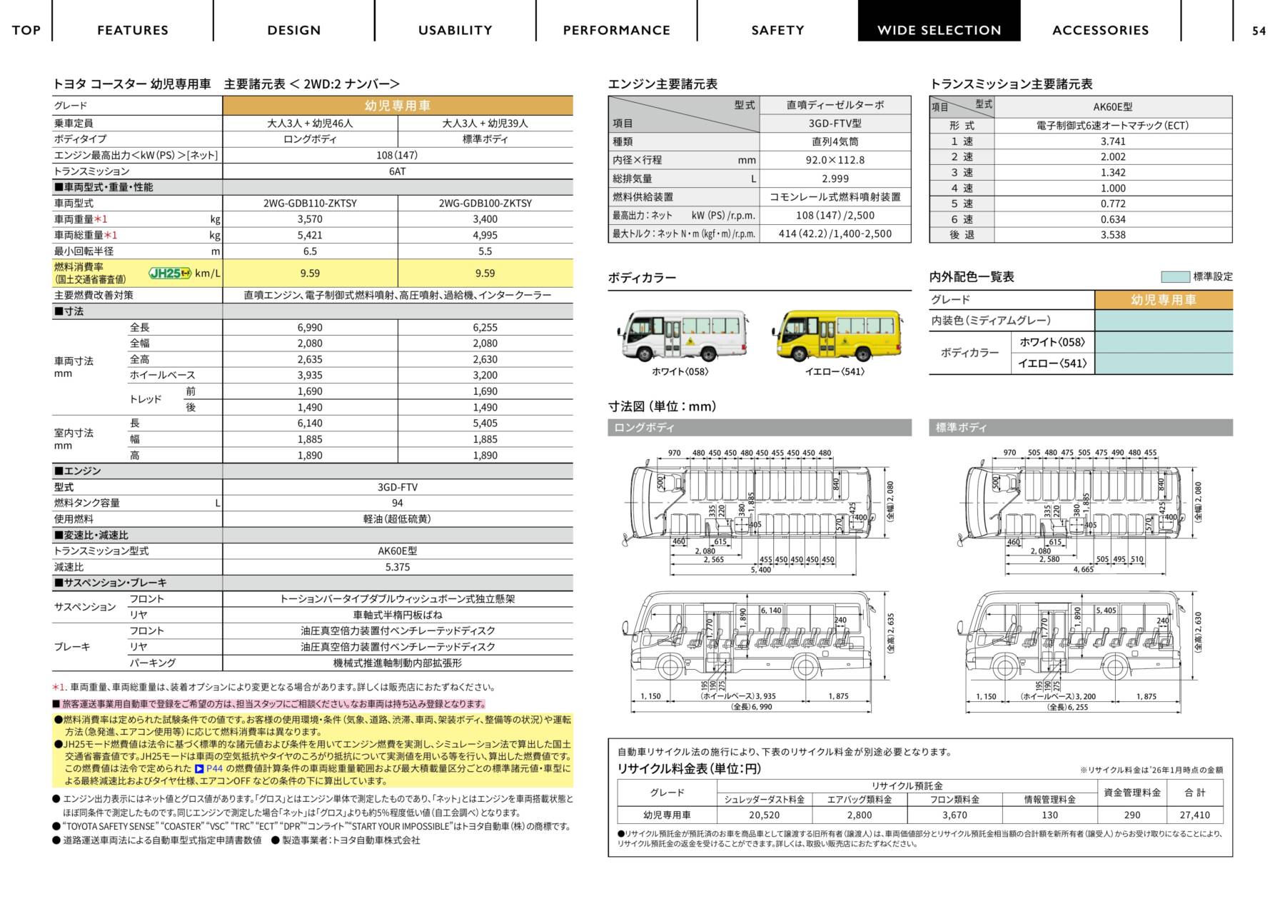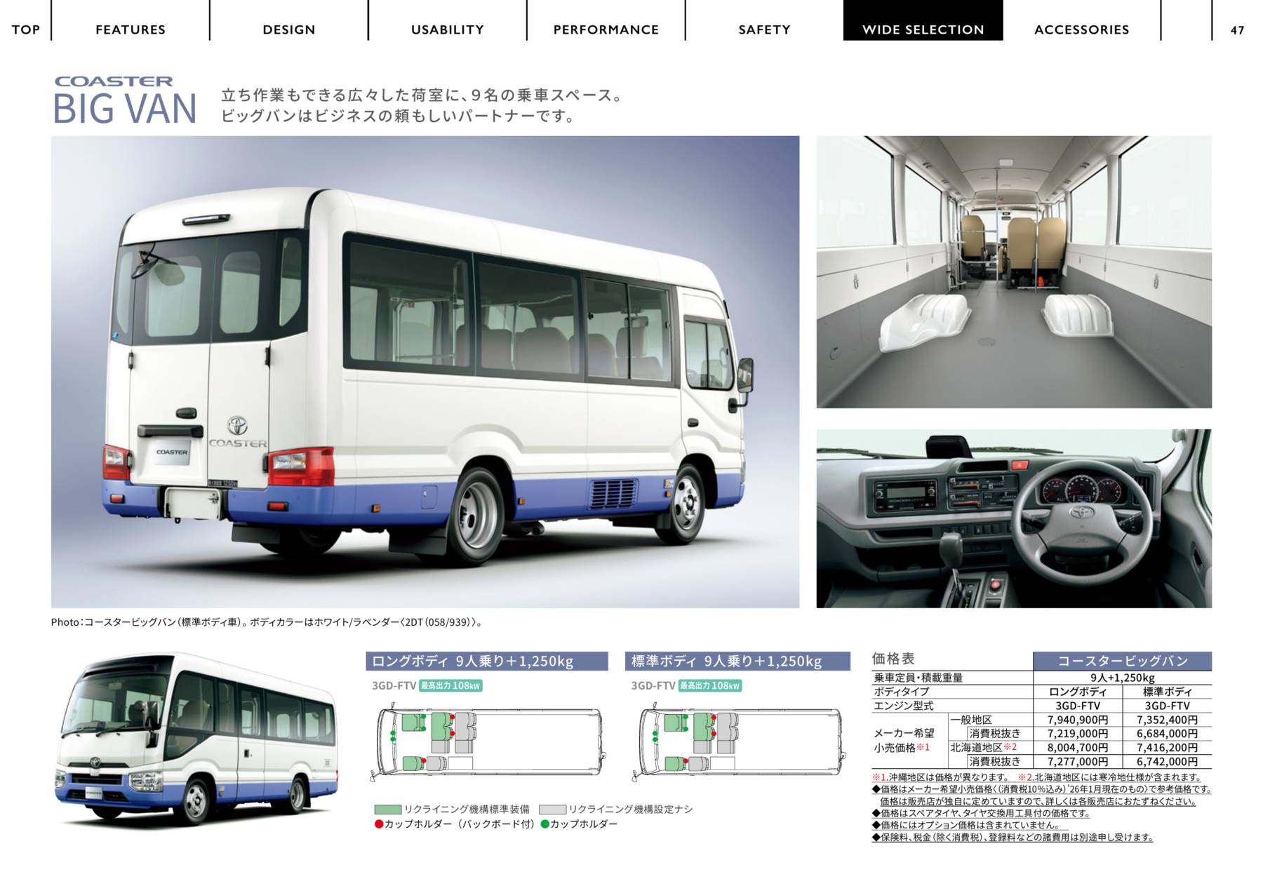 TOYOTA Coaster อัพเกรดในประเทศญี่ปุ่น ได้มีการติดตั้งเครื่องยนต์ดีเซลใหม่ขนาด 3.0 ลิตร (รหัส 3GD-FTV) ที่ให้สมรรถนะการขับเคลื่อนทรงพลัง ด้วยกำลังสูงสุด 123 กิโลวัตต์ และแรงบิดสูงสุด 452 นิวตัน-เมตร (สเปกกำลังสูง) พร้อมทั้งยกระดับสมรรถนะการเบรก ด้วยการติดตั้งดิสก์เบรกขนาด 17 นิ้ว ทั้งด้านหน้าและด้านหลัง