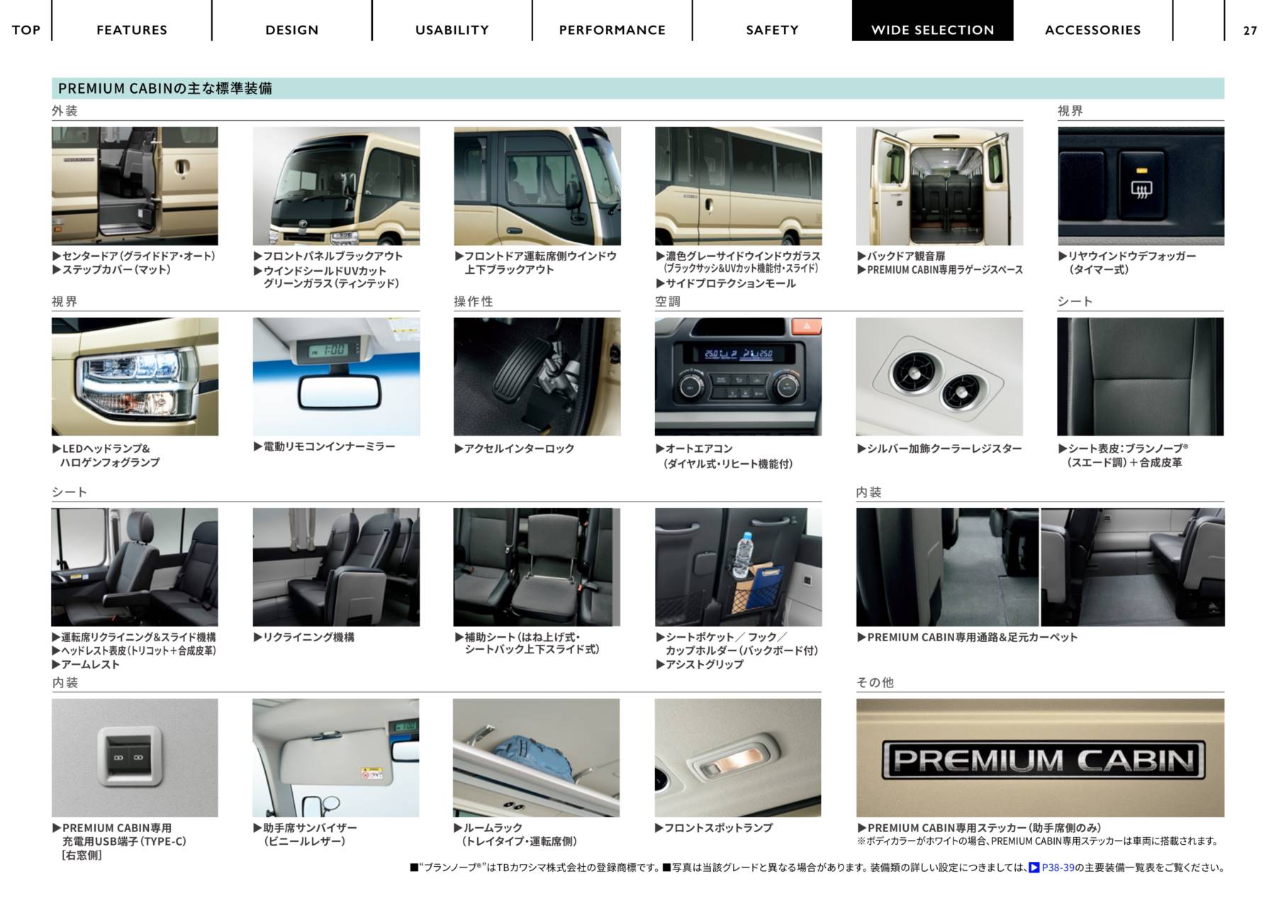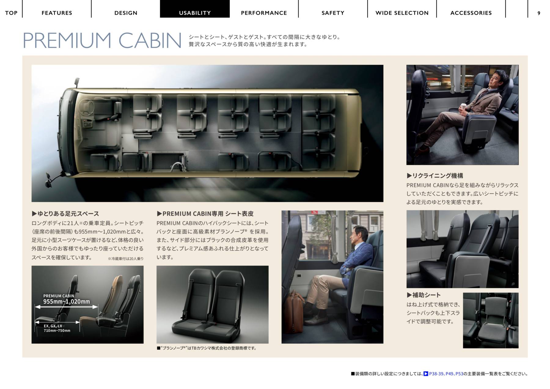 - PREMIUM CABIN: รุ่น “สุดยอดความผ่อนคลาย” เน้นระยะเบาะกว้าง วัสดุพรีเมียม และยูทิลิตี้เฉพาะรุ่น