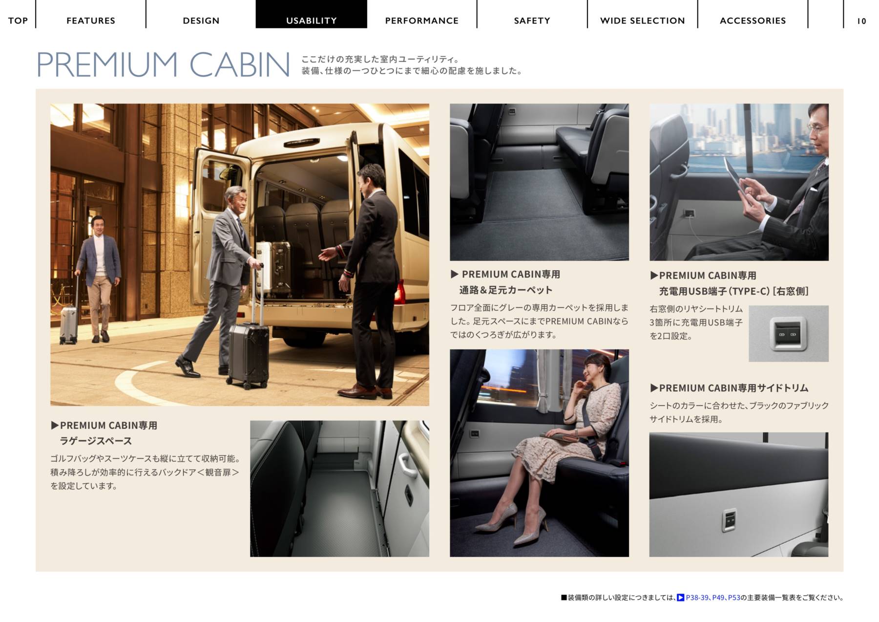 รุ่น PREMIUM CABIN ถูกวางตำแหน่งเป็นรุ่นที่ “สุดทางของความกว้างและคุณภาพ” เน้นพื้นที่นั่งแบบพรีเมียมและระยะห่างเบาะที่มากเป็นพิเศษ
