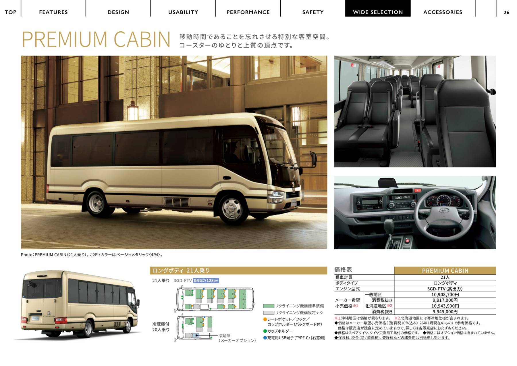 - Premium Cabin (ตัวถังยาว รองรับ 21 ที่นั่ง)