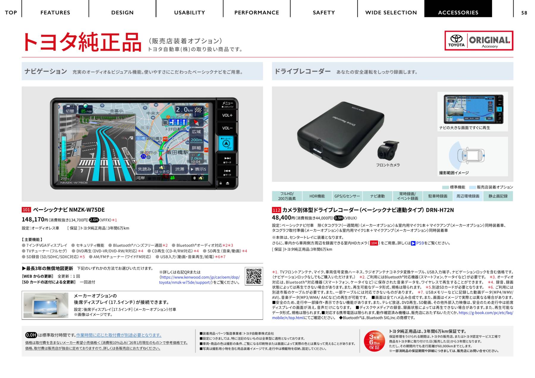 - Basic Navi: NMZK-W75DE ราคาอ้างอิง 148,170 เยน (ไม่รวมภาษี 134,700 เยน)