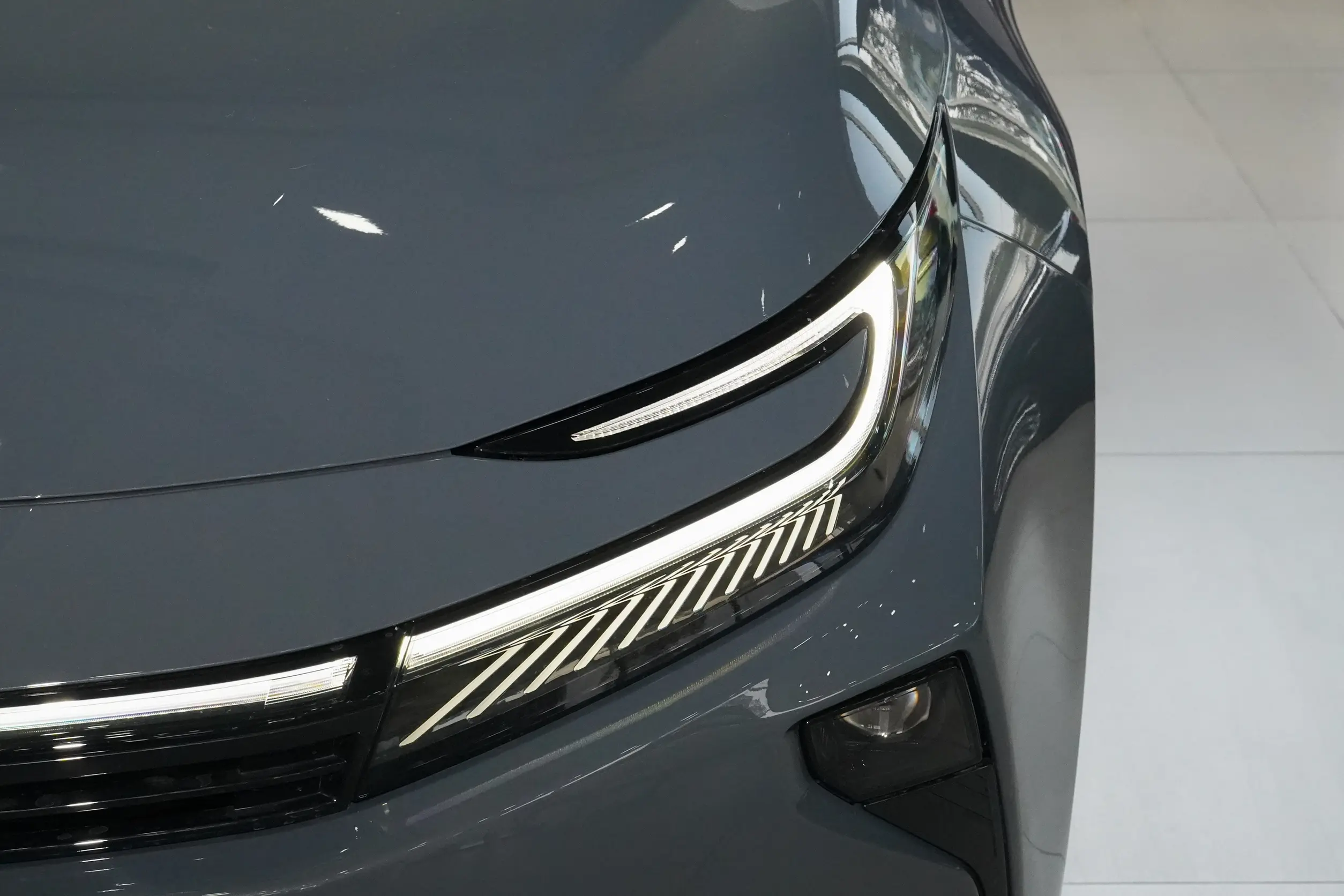 Corolla รุ่นไมเนอร์เชนจ์ใช้แนวทางดีไซน์ใหม่ของ Toyota โดยด้านหน้าเด่นด้วย แถบไฟ LED แนวยาวเชื่อมต่อ พร้อมชุดไฟทรง C-Shape ช่วยยก “จุดโฟกัส” ให้ดูสูงขึ้น ส่งผลให้หน้าตาดูทันสมัยและพรีเมียมกว่าเดิม ขณะเดียวกันยังเสริมช่องดักลมแนวตั้งเพื่อเพิ่มอารมณ์สปอร์ตแบบพอดี ๆ