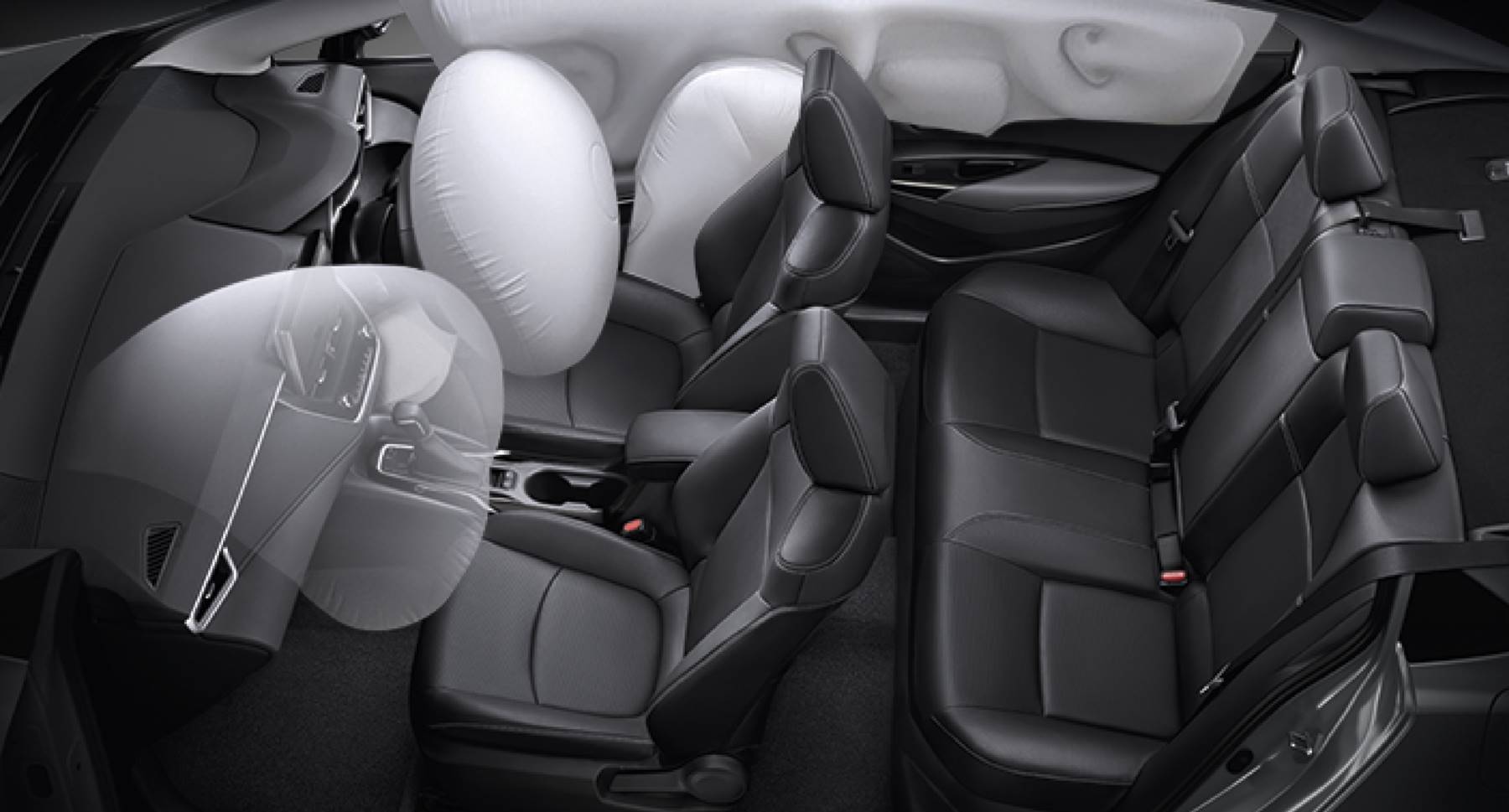 • เข็มขัดนิรภัยคู่หน้า แบบดึงรั้งกลับ และผ่อนแรงอัตโนมัติ ELR 3 จุด 2 ตำแหน่ง พร้อมระบบเตือนคาดเข็มขัดนิรภัย