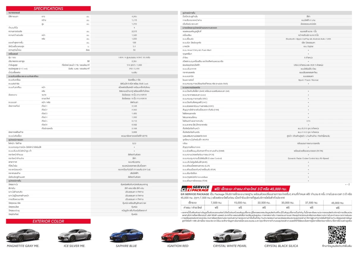- GR Service package บริการเช็กระยะมาตรฐาน ภายในระยะเวลา 3 ปี 45,000 กม.(แล้วแต่ระยะใดถึงก่อน)