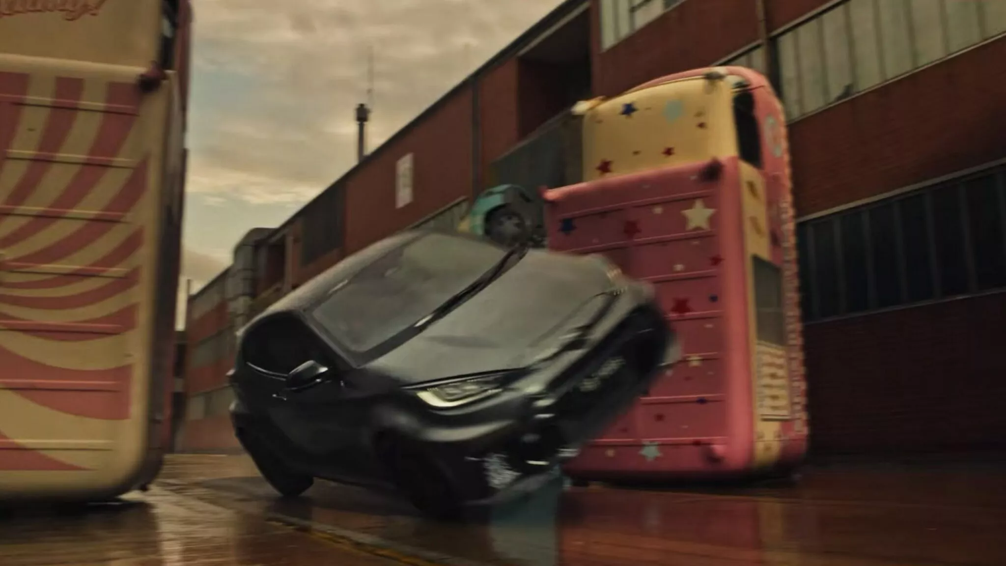 หลังจากนั้น โฆษณายังพาไปฉากพื้นเปียกฝนที่เอื้อให้รถ “ไถล/สไลด์” ได้ง่าย มีช่วงโชว์ระบบขับสี่ GR-Four และปิดท้ายด้วยท่าทางที่หน่วยงานกำกับมองว่า “ดูอันตราย” เช่นการยกสองล้อช่วงสั้น ๆ และการหยุดรถแบบหันข้างใกล้รถรุ่นอื่นในตระกูล GR