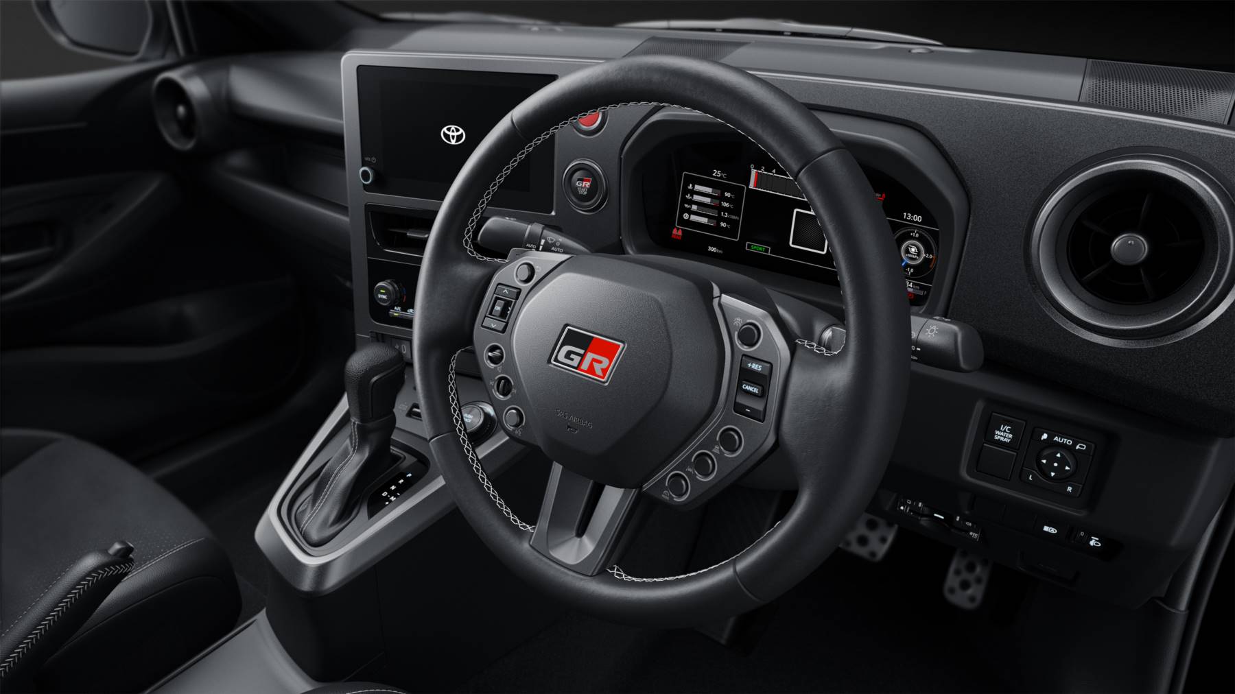- นี่คือครั้งแรกของการนำพวงมาลัย GR ที่ถูกพัฒนาขึ้นใหม่มาใช้งาน โดยได้รับการออกแบบอย่างพิถีพิถันเพื่อมอบประสิทธิภาพการควบคุมที่เหนือกว่าขณะขับขี่