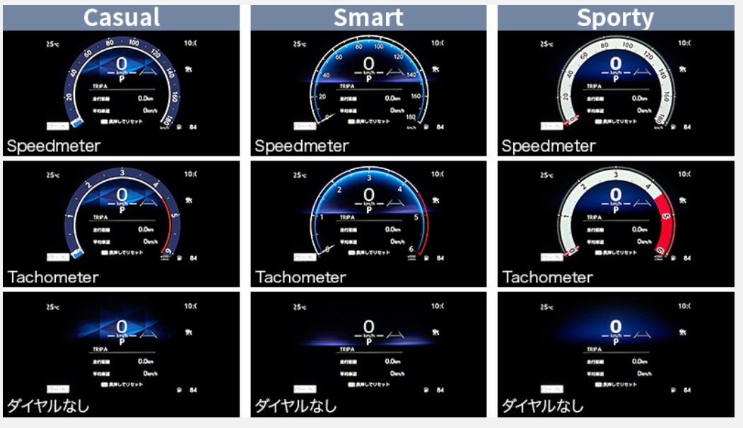 ตัวอย่างออปชันที่ระบุ ได้แก่ ไฟหน้า LED แบบ Bi-Beam, จอ 8 นิ้ว, กล้องพาโนรามา และ มาตรวัดดิจิทัล