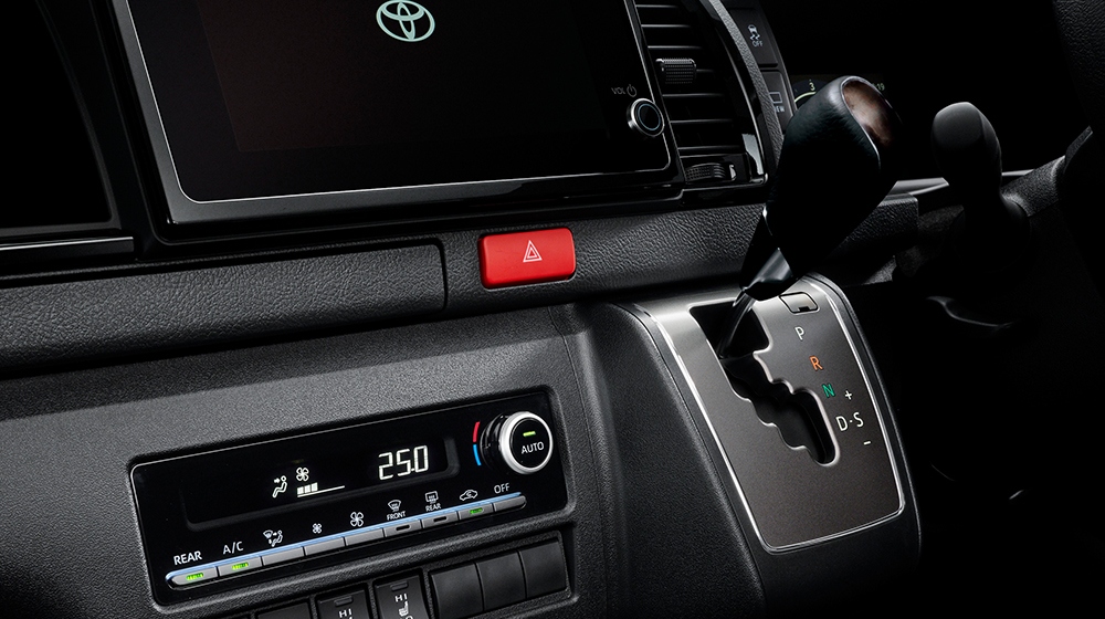- Hiace Super GL ขับเคลื่อน 2 ล้อ เครื่องยนต์ดีเซล 2.8 ลิตร (ตัวถังมาตรฐาน) พร้อมอุปกรณ์เสริมจากโรงงาน
