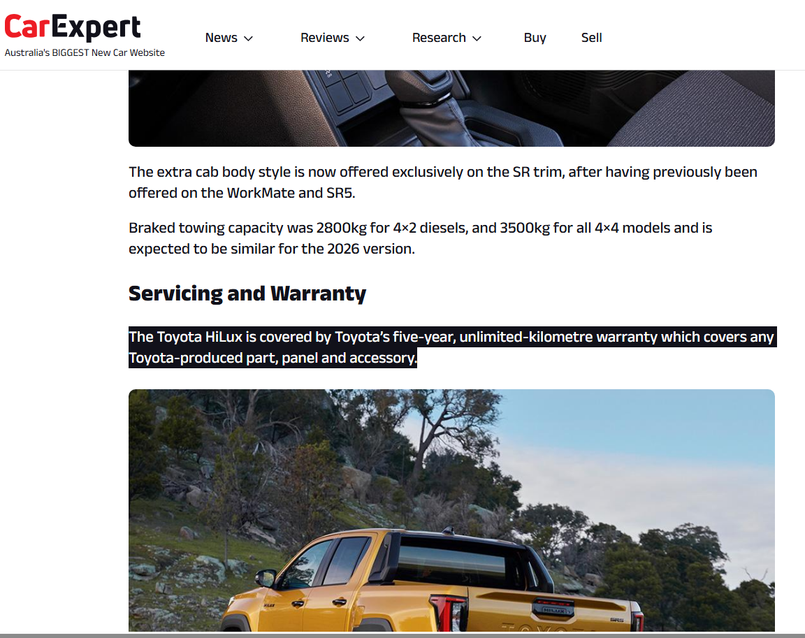 Toyota Australia ยังคงโปรแกรมบำรุงรักษาราคาคงที่ (Capped Price Service) ค่าเซอร์วิส 6 ครั้งแรก = AU $245–$290 ต่อครั้ง (≈ 5,200–6,100 บาท)