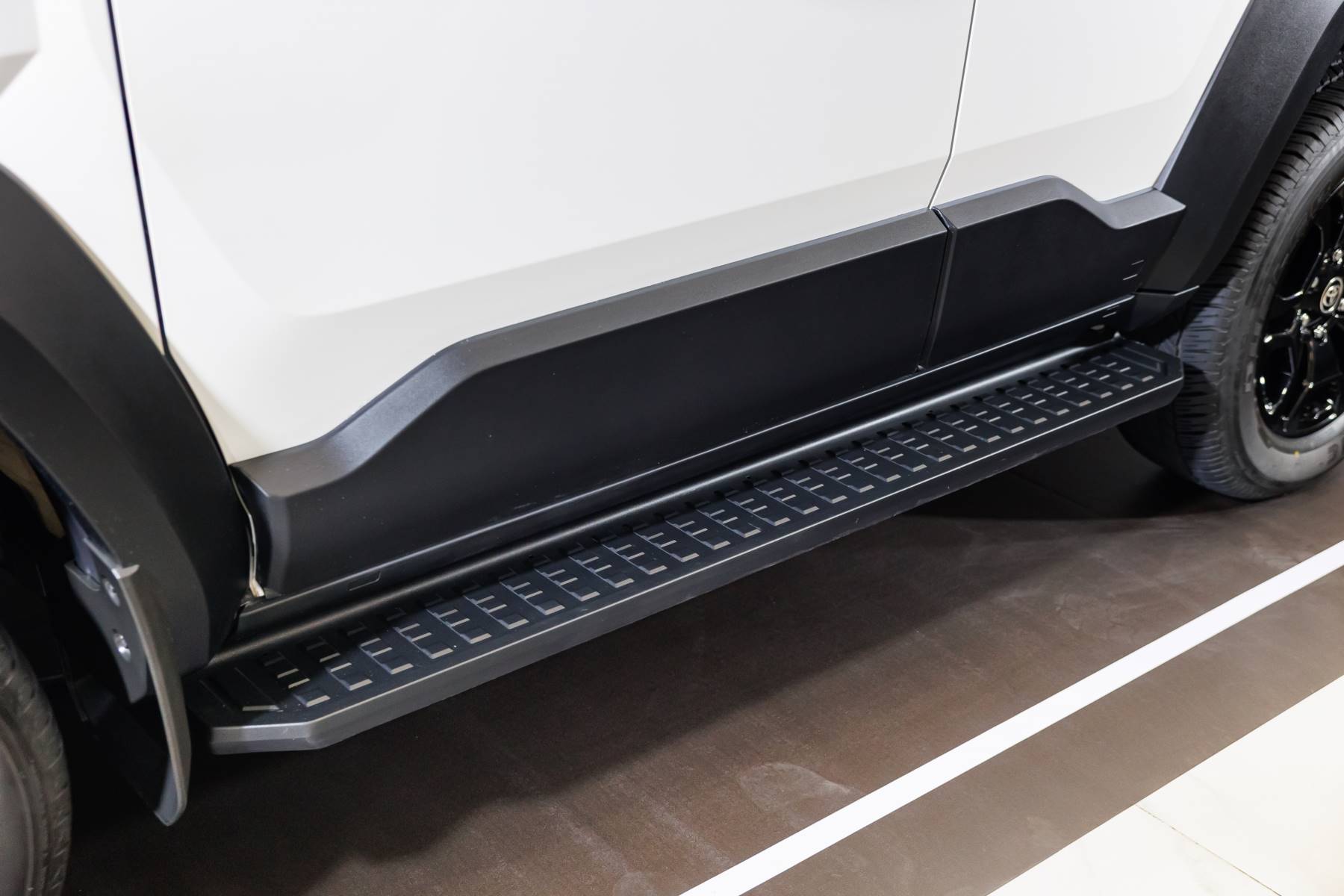 • ชุดคิ้วตกแต่งด้านข้างโครเมียม (เพิ่มมิติให้รถดูไม่ทึบจนเกินไป)ล้อ LENSO MX Duty (17 นิ้ว 8.5J x 17″ ET20): การเลือกใช้แบรนด์ล้อสัญชาติไทยที่โด่งดังระดับโลกอย่าง LENSO ในซีรีส์สายลุย (MX) ช่วยเพิ่มความดุดัน สเปกออฟเซ็ต ET20 น่าจะทำให้ล้อล้นออกมาพอดีกับซุ้มล้อ ดูเต็มทรง