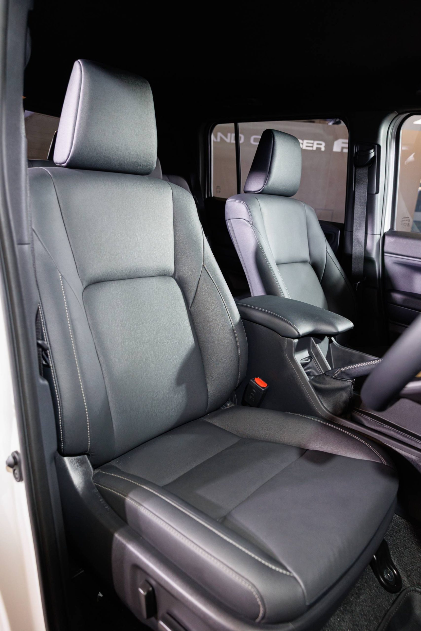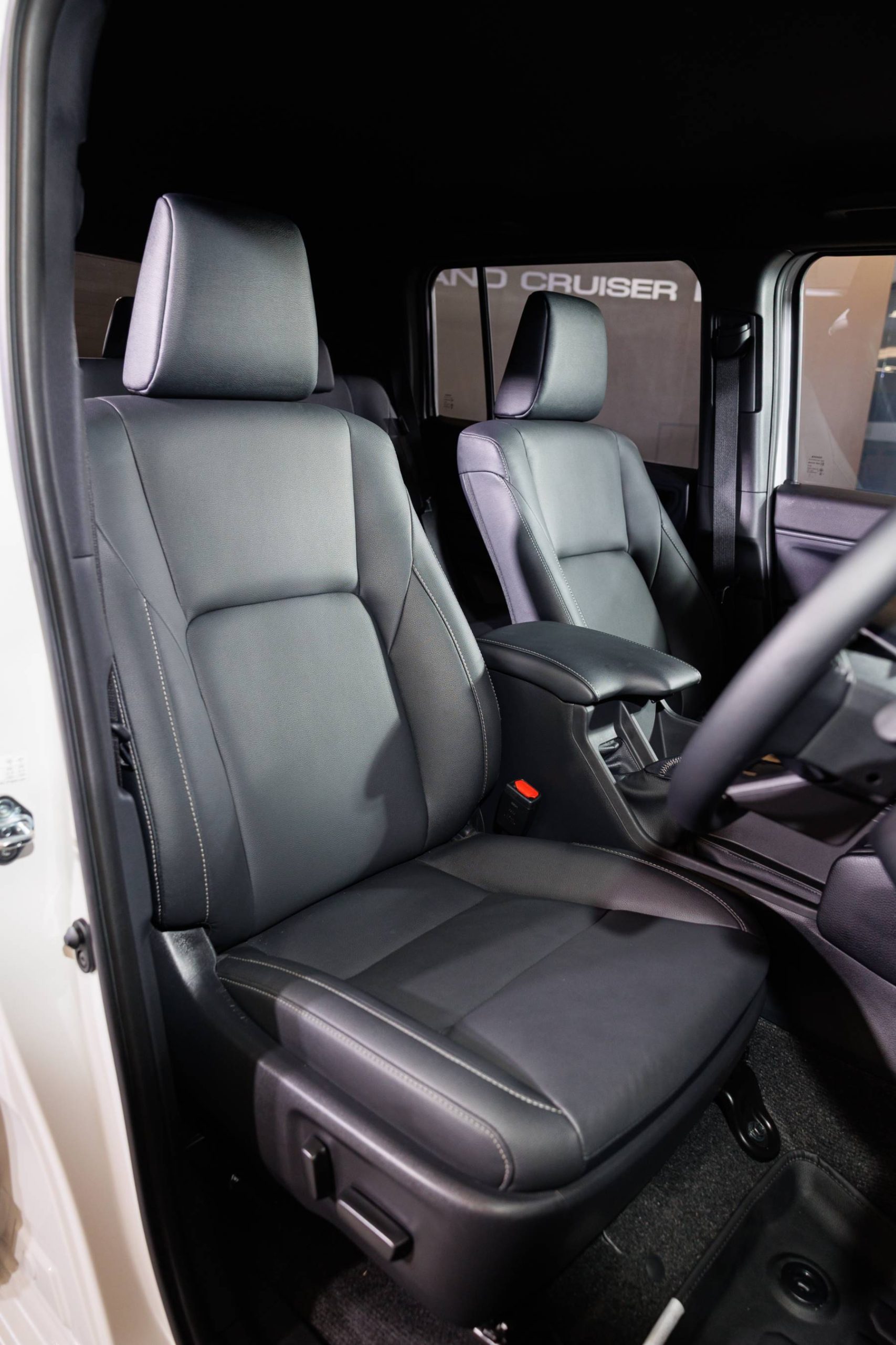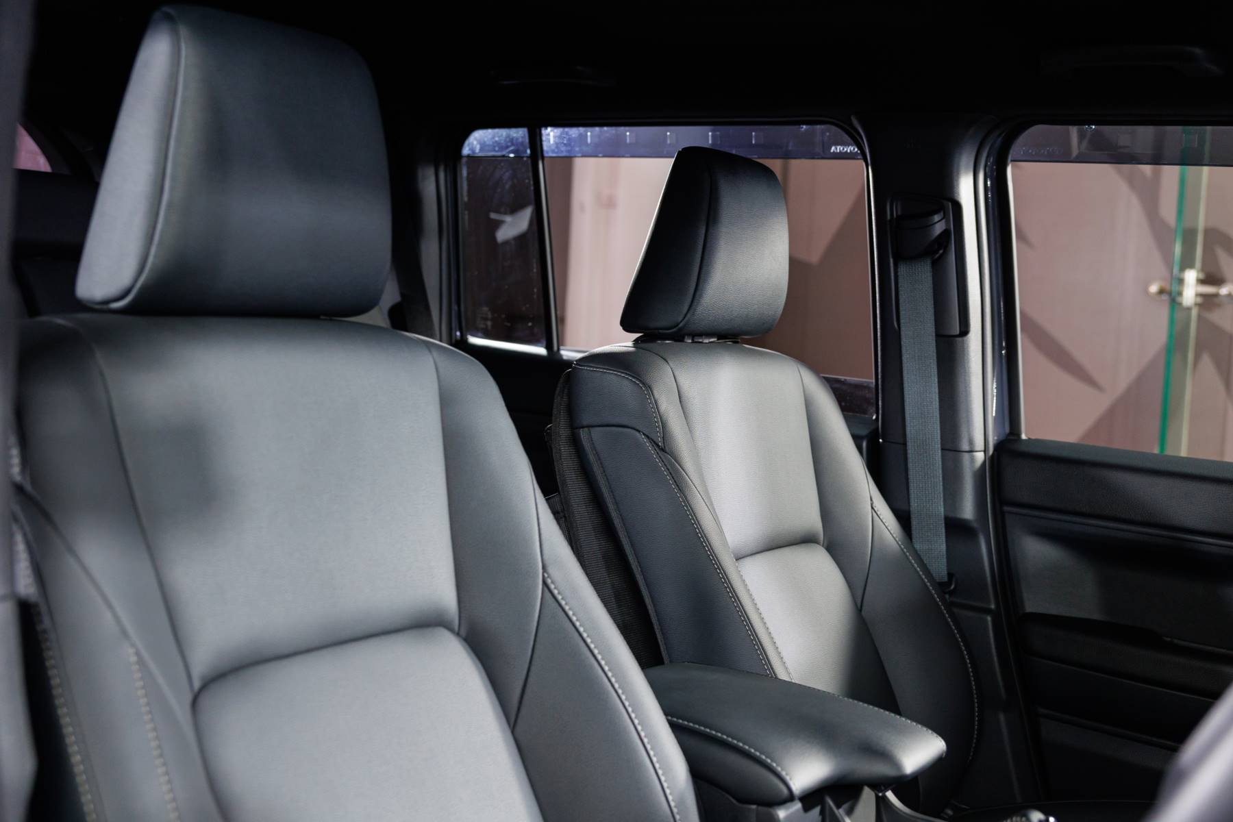 • เบาะนั่งคู่หน้า: ปรับด้วยมือ (Manual) เพื่อความทนทานและไม่ซับซ้อน (ฝั่งคนขับ 6 ทิศทาง / ผู้โดยสาร 4 ทิศทาง) หุ้มด้วยหนังเทียมหรือผ้าเกรดสูงสีดำ