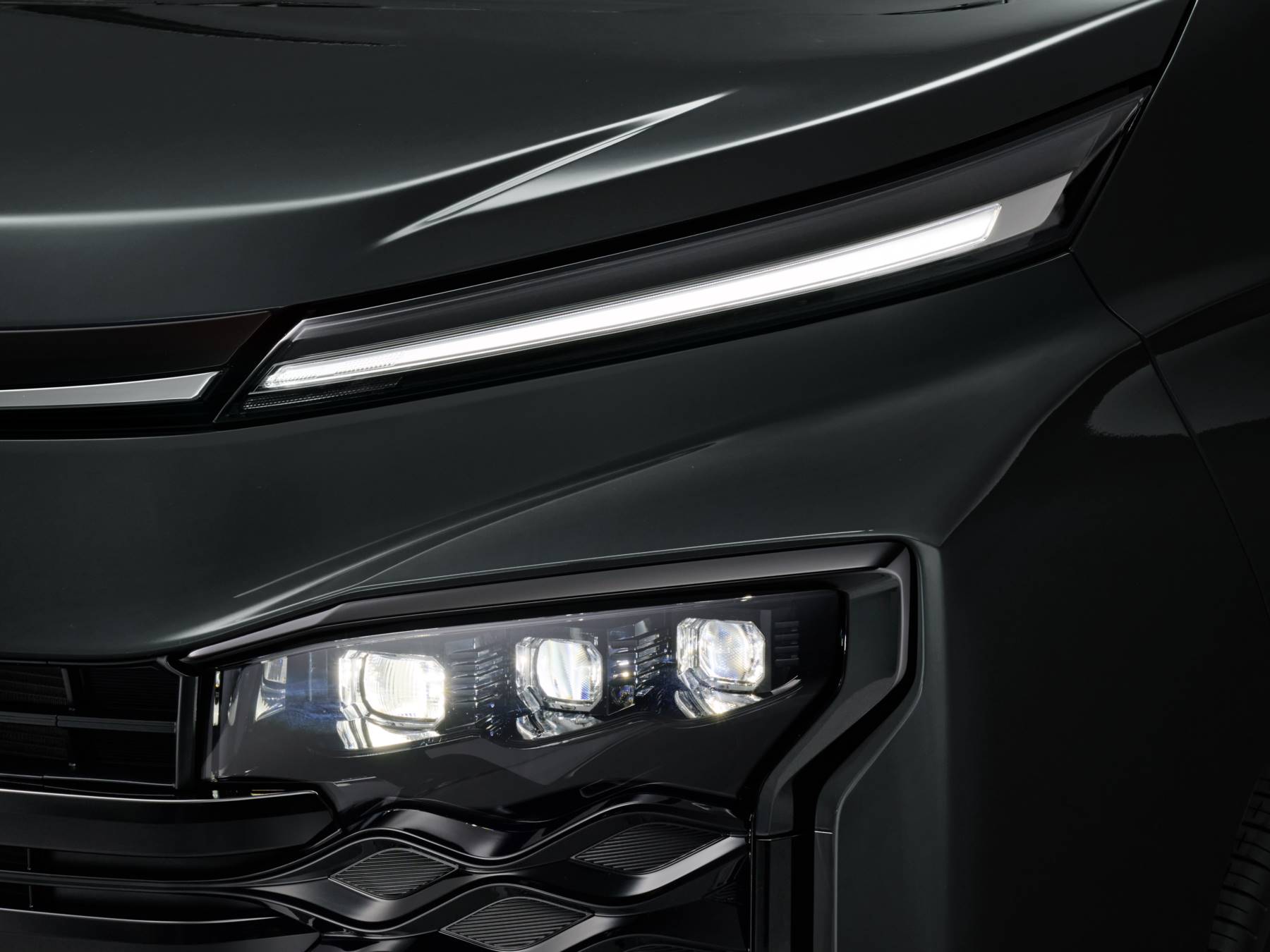• ชุดไฟหน้า: ใช้ดีไซน์แบบ “Split Headlights” คือแยกไฟ Day Time Running Light ไว้ด้านบน และชุดไฟส่องสว่างหลักไว้ด้านล่าง ซึ่งเป็นเทรนด์การออกแบบรถยนต์ยุคใหม่
