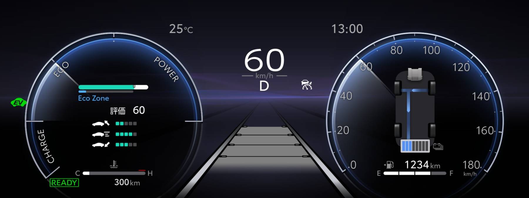 • พละกำลังมอเตอร์ไฟฟ้า: มอเตอร์หน้าให้กำลัง 95 แรงม้า ส่วนรุ่น E-Four (4WD) จะมีมอเตอร์หลังเพิ่มอีก 41 แรงม้า