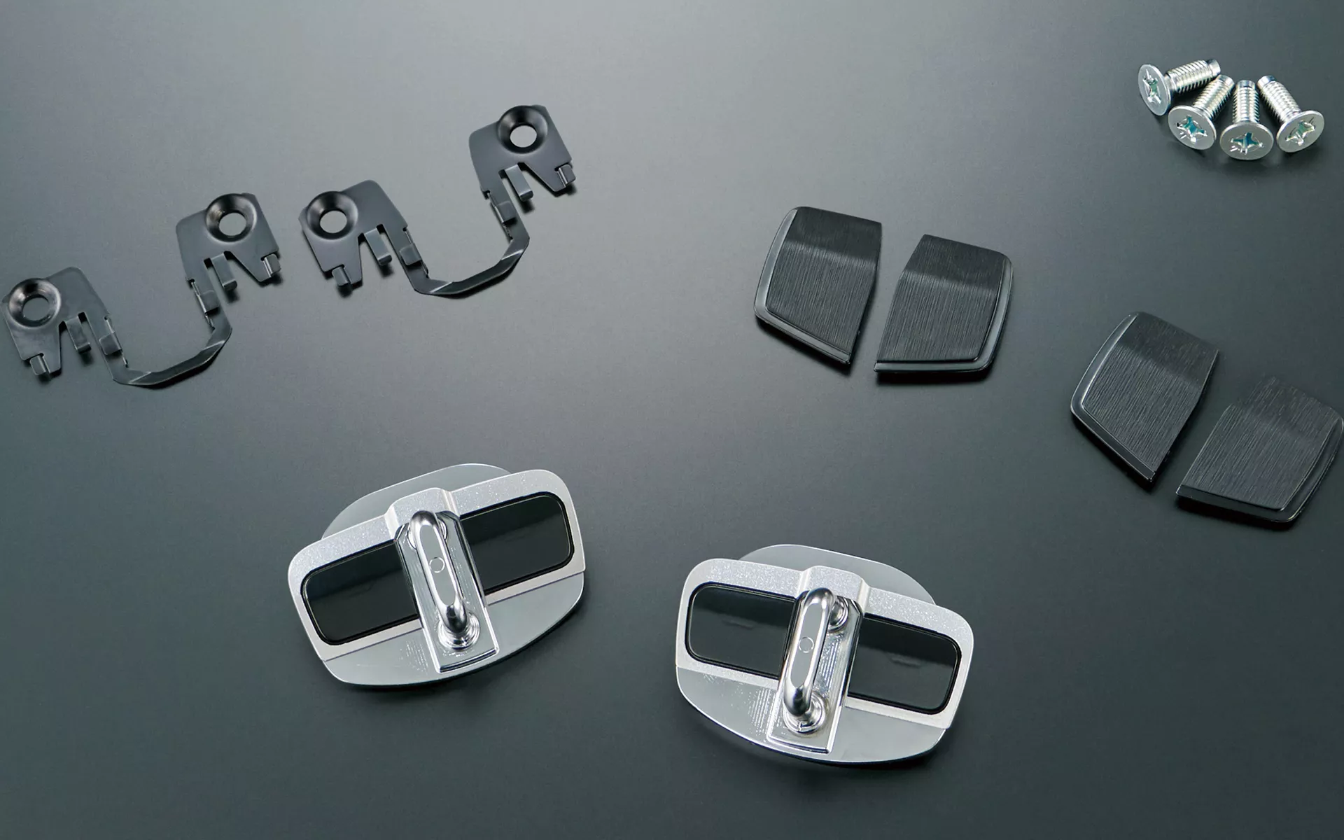 อีกชิ้นที่น่าสนใจคือ Door Stabilizers ซึ่งเป็นชิ้นเสริมบริเวณจุดยึดกลอนประตู (door striker) แนวคิดคือเพิ่ม ความแข็งแรงเชิงโครงสร้าง บริเวณรอบกรอบประตู เพื่อช่วยให้การบิดตัวของตัวถังลดลง ผลที่ TRD ต้องการคือ พวงมาลัยคมขึ้น/ฟีลแน่นขึ้น โดยเฉพาะจังหวะเข้าโค้งหรือเปลี่ยนทิศทางเร็ว ๆ