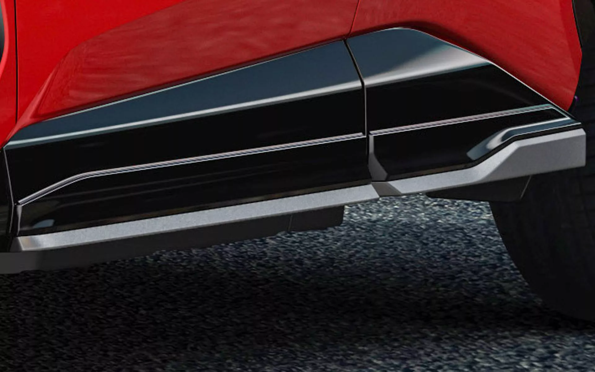 ชิ้นต่อมาคือ สเกิร์ตข้าง ที่ตกแต่งด้วยโทน สีเงินแบบเรียบ ช่วยให้ด้านข้างดูยาวและแน่นขึ้น จุดนี้เหมาะกับคนที่อยากได้ความสปอร์ต “ดูแพง” มากกว่าความจัดจ้าน