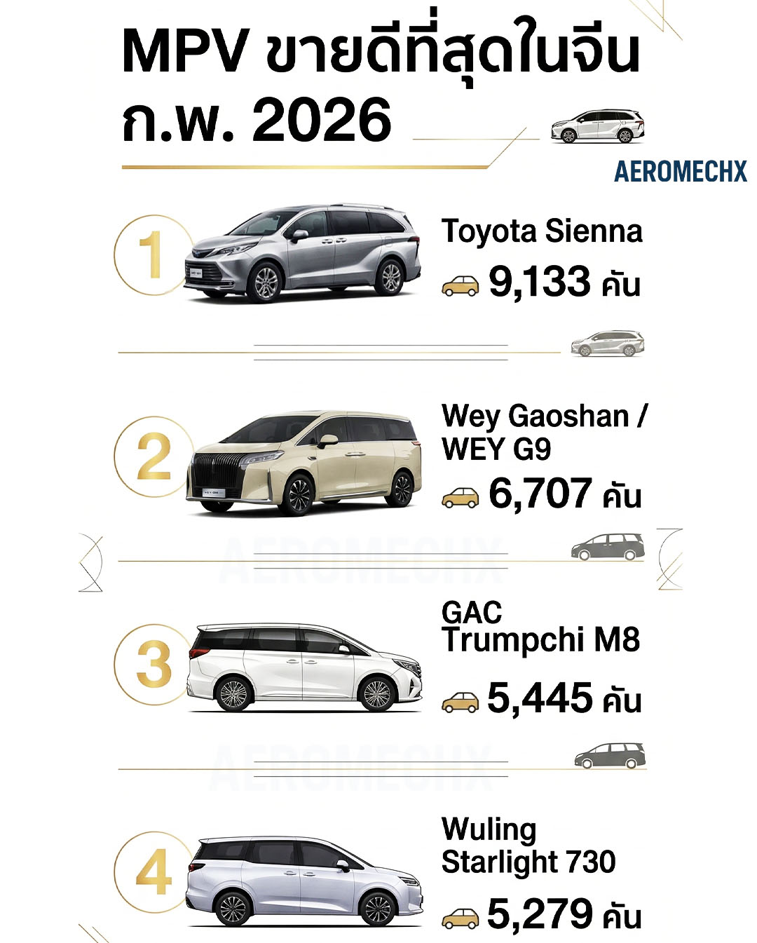 รวมภาพคันจริง TOYOTA Sienna MPV MY2026 7 ที่นั่ง ในจีน ราคา 1.37 ล้านบาท 2.5 ไฮบริด