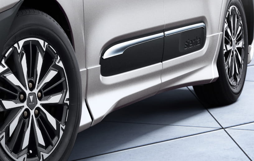 Sienta ใหม่ ภายนอกเน้นการออกแบบที่กระชับมากขึ้น การออกแบบวงกลมและสี่เหลี่ยม “ชิกากุมารุ” ที่เรียบง่าย มุมโค้งมนสร้างสัดส่วนอย่างสมดุล บนตัวถังทูโทนแดงเมทัลลิก หลังคาสีเทาเข้ม ไฟหน้า LED Bi-Beam (พร้อมฟังก์ชั่นปรับระดับอัตโนมัติ) + ไฟเลี้ยว LED + ไฟหรี่ LED ตะแกรงหน้ารูปตัว U นอกจากนี้ยังมีสีขาว White Pearl Crystal Shine ปรากฏให้เห็นพร้อมบานประตูเลื่อน 2 ข้าง ล้ออัลลอยขนาด 15 นิ้ว ไฟท้ายแบบ LED แนวตั้งออกแบบใหม่