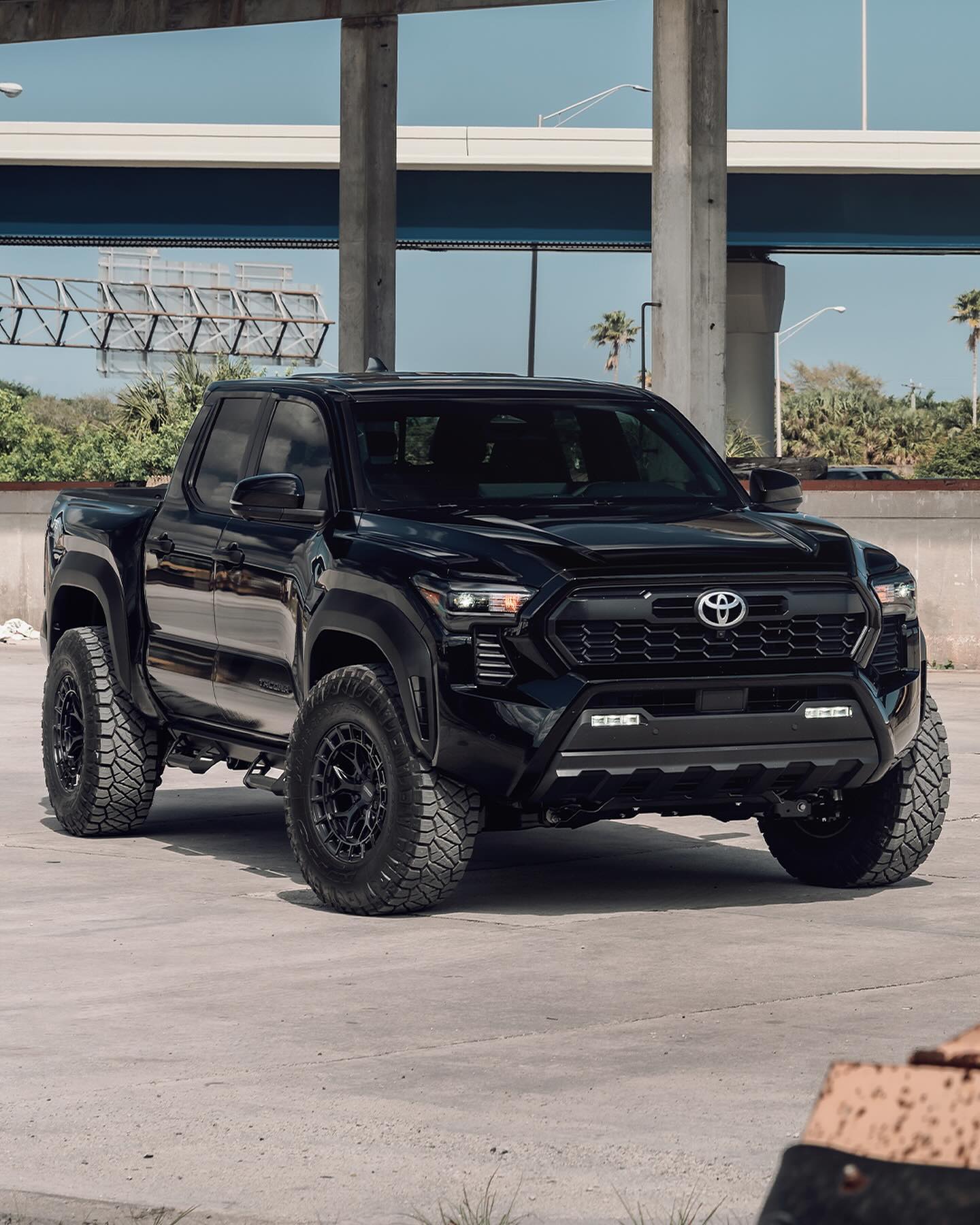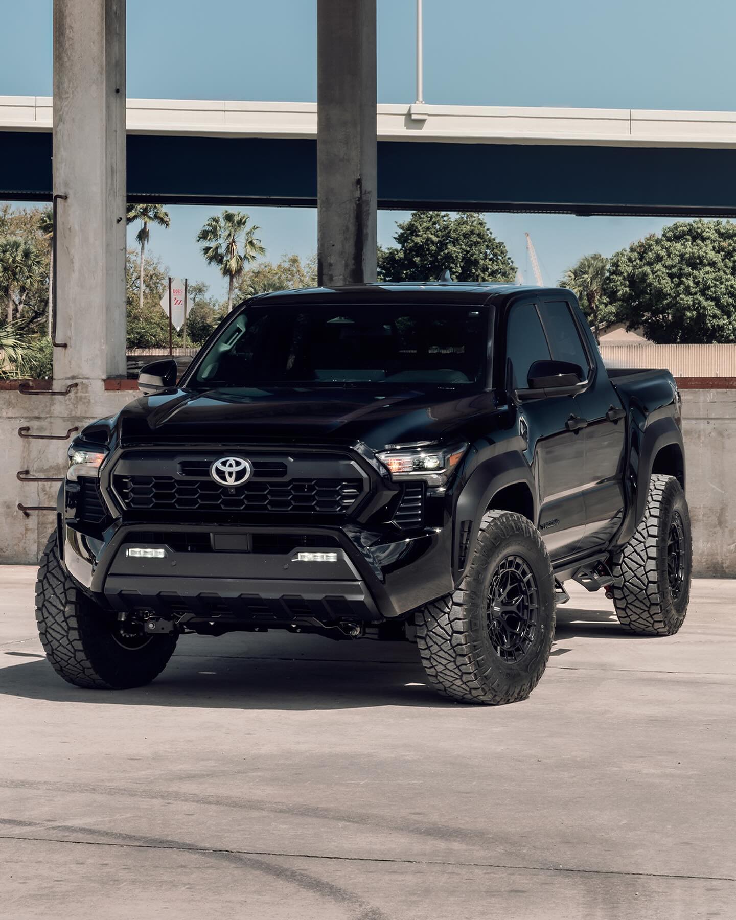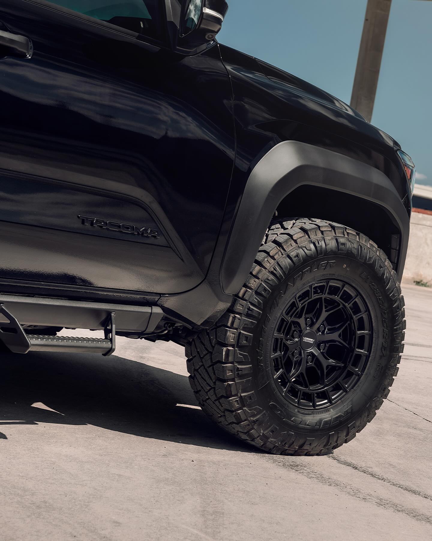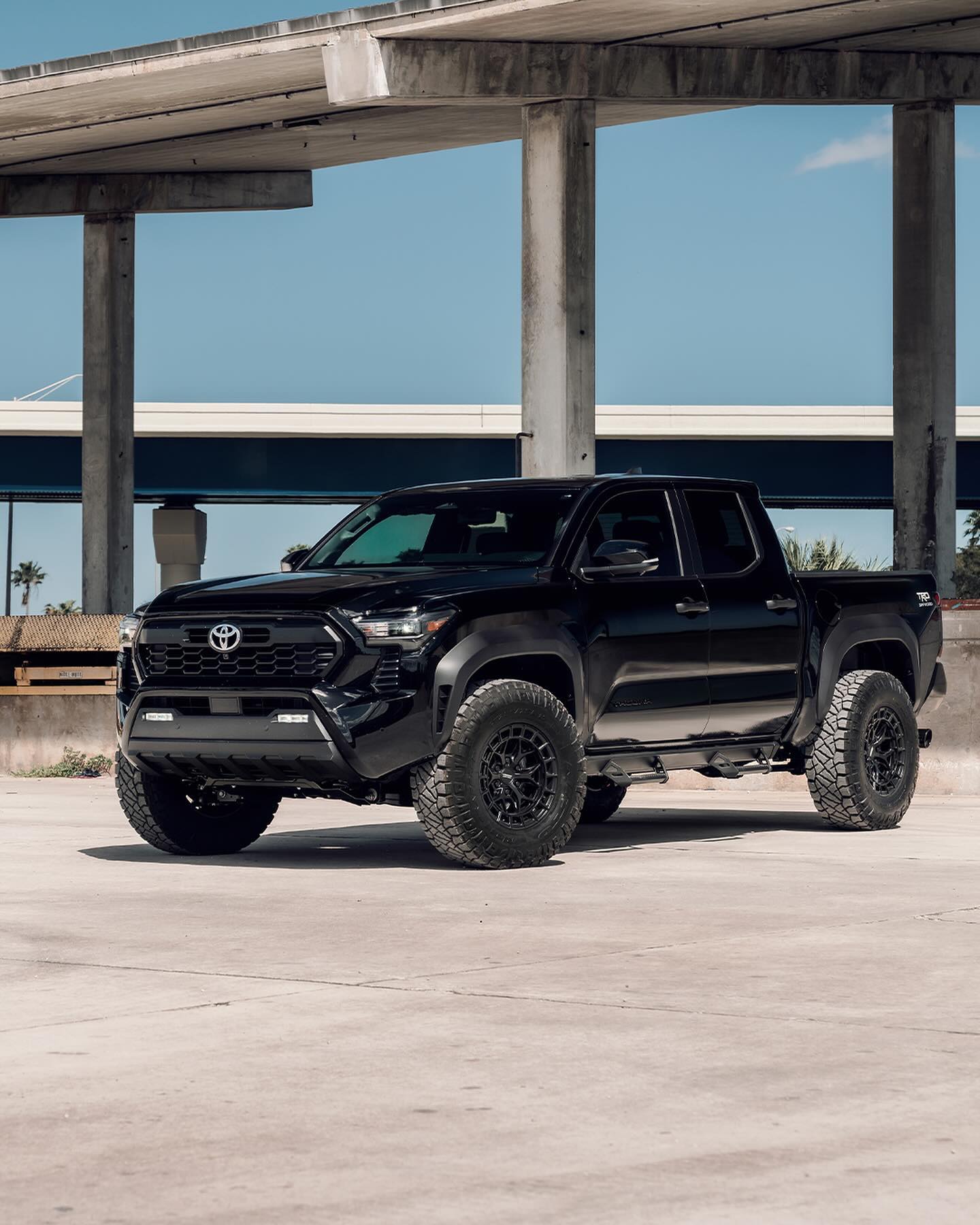 Tacoma มาพร้อมการออกแบบที่ทรงพลัง ไฟหน้าทรงเพรียวแบบ LED กันชนหน้าพร้อมช่องระบายอากาศที่ไหลลงสู่กระจังหน้าด้านล่าง TRD ใช้กระจังหน้าสีดำเรียบง่ายพร้อมตราสัญลักษณ์ Toyota jellybean ตรงกลาง โป่งล้อสีดำ ล้ออัลลอยขนาดใหญ่พร้อมสร้างออฟโรด