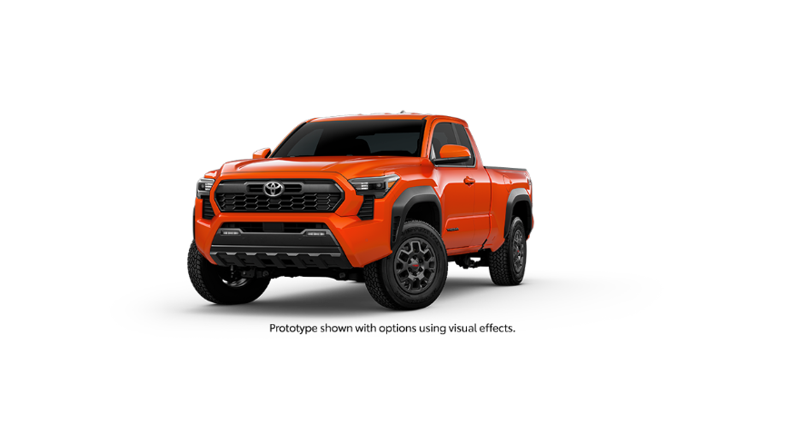 Toyota Tacoma TRD PreRunner รถบรรทุกแค็บ 2 ประตูยกสูง มาพร้อมระบบขับเคลื่อนล้อหลังมาตรฐาน อุปกรณ์มาตรฐานรวมถึงเฟืองท้ายแบบล็อกและยางสำหรับทุกพื้นที่ขนาด 17 นิ้ว
