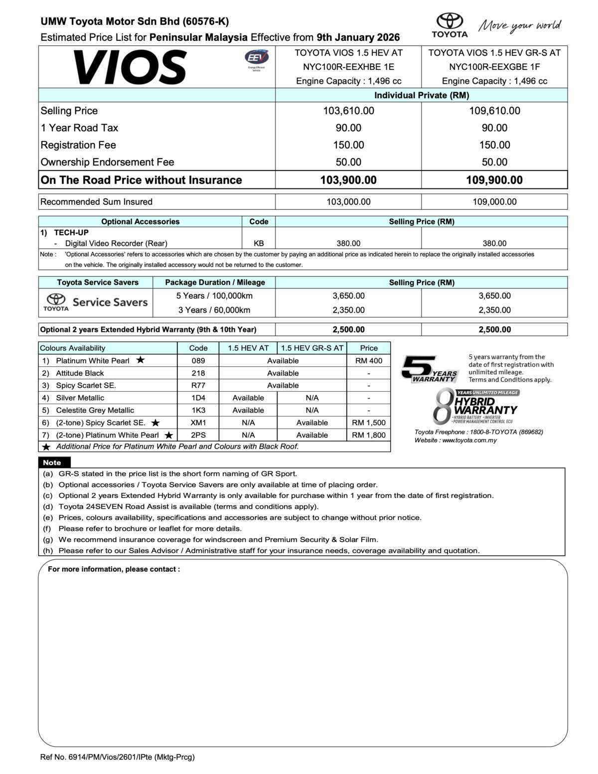Toyota Vios Hybrid 2026 ในมาเลเซีย มาพร้อมการรับประกัน: