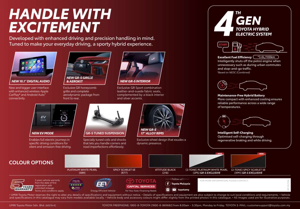 - 1.5 HEV GR Sport AT ราคาโดยประมาณ 109,900 ริงกิต หรือ 848,000 บาท