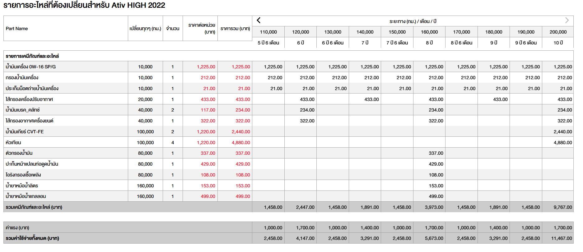 10 ปี กับ Toyota Ativ High 2022 – ค่าใช้จ่ายดูแลรักษาแบบครบทุกระยะ