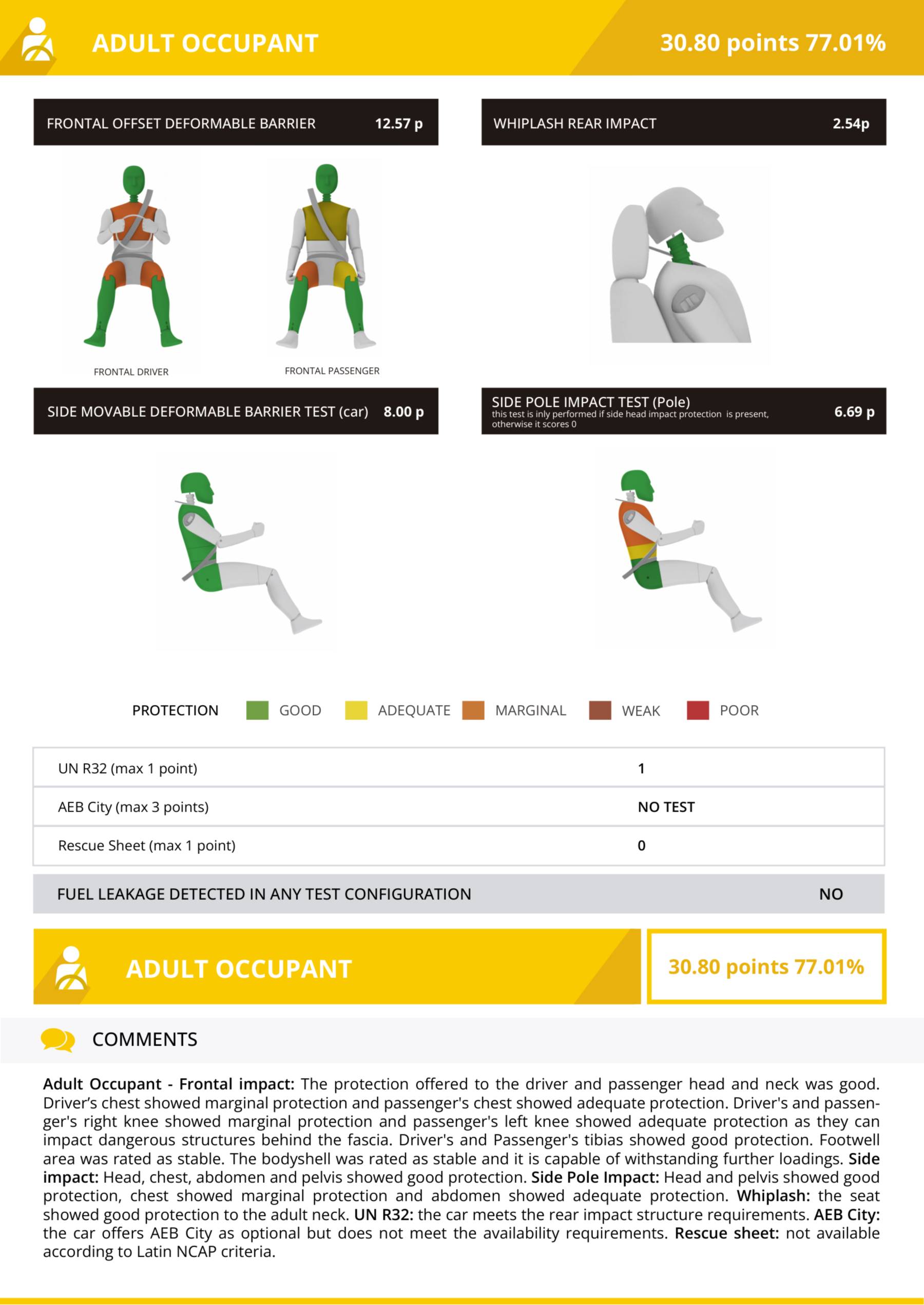 → ผลลัพธ์: ถูกจำกัดให้ไม่เกิน 2 ดาวตามระบบเกณฑ์ขั้นต่ำของ Latin NCAP 2025