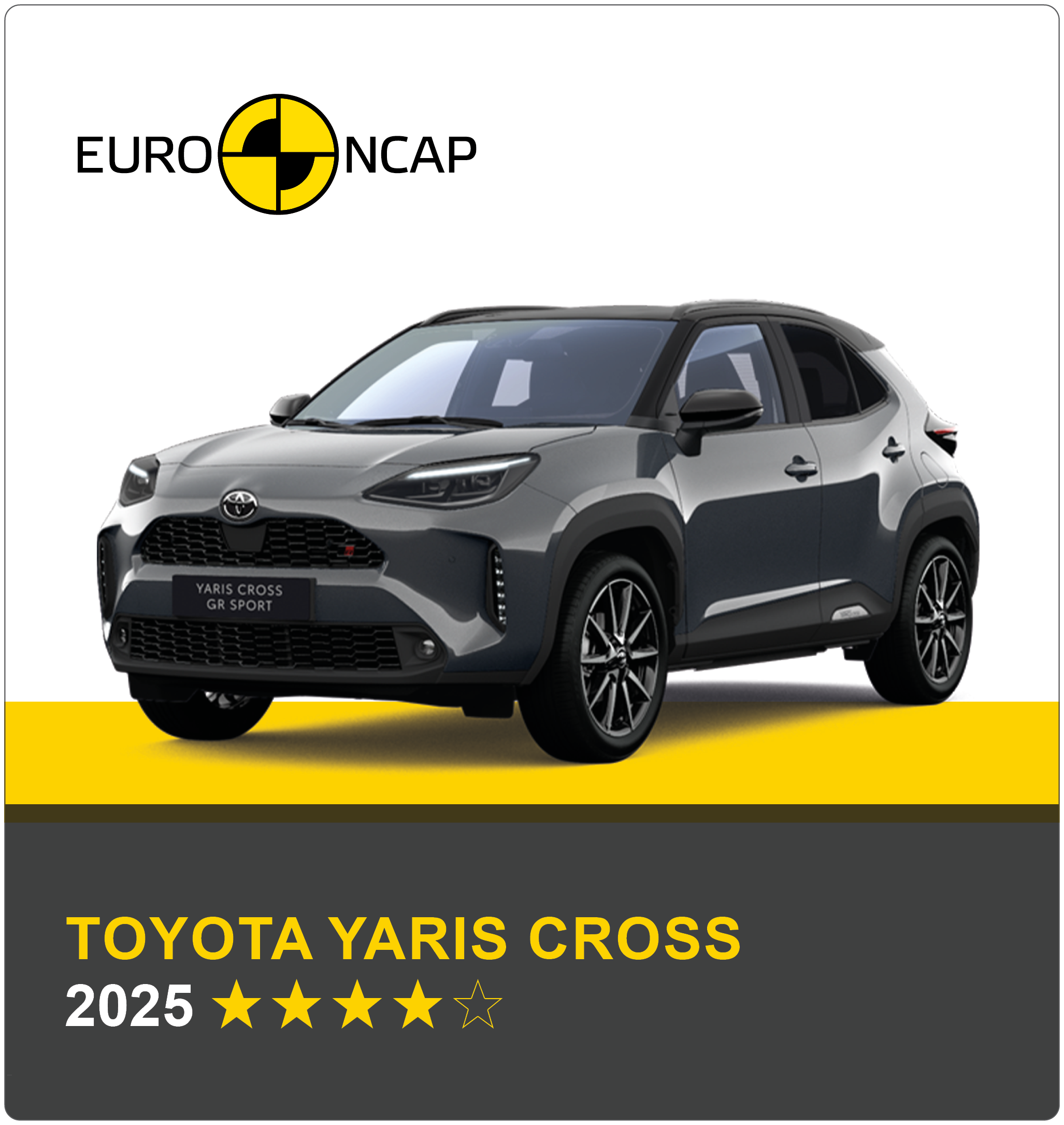 Toyota Yaris Cross ปี 2025 ผ่านการทดสอบมาตรฐานความปลอดภัย Euro NCAP ล่าสุด พร้อมคะแนนรวมระดับสี่ดาว ถือว่าอยู่ในกลุ่มที่ปลอดภัยดีมากตามมาตรฐานรถยนต์ขนาดเล็กแบบ SUV โดยผลทดสอบครอบคลุมความปลอดภัยผู้โดยสาร ระบบช่วยขับ ตลอดจนการปกป้องคนเดินถนนและผู้ขับขี่รถสองล้อ
