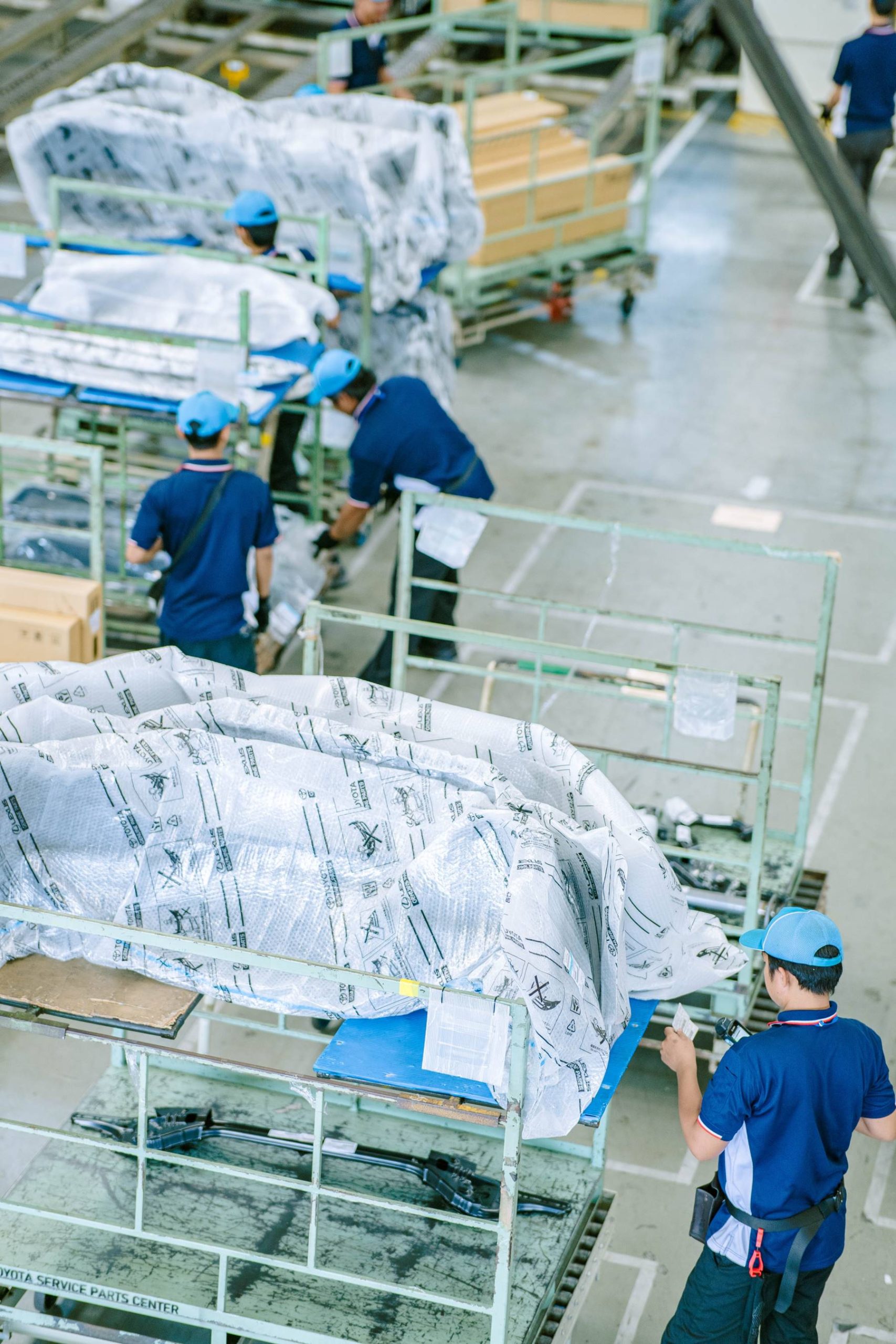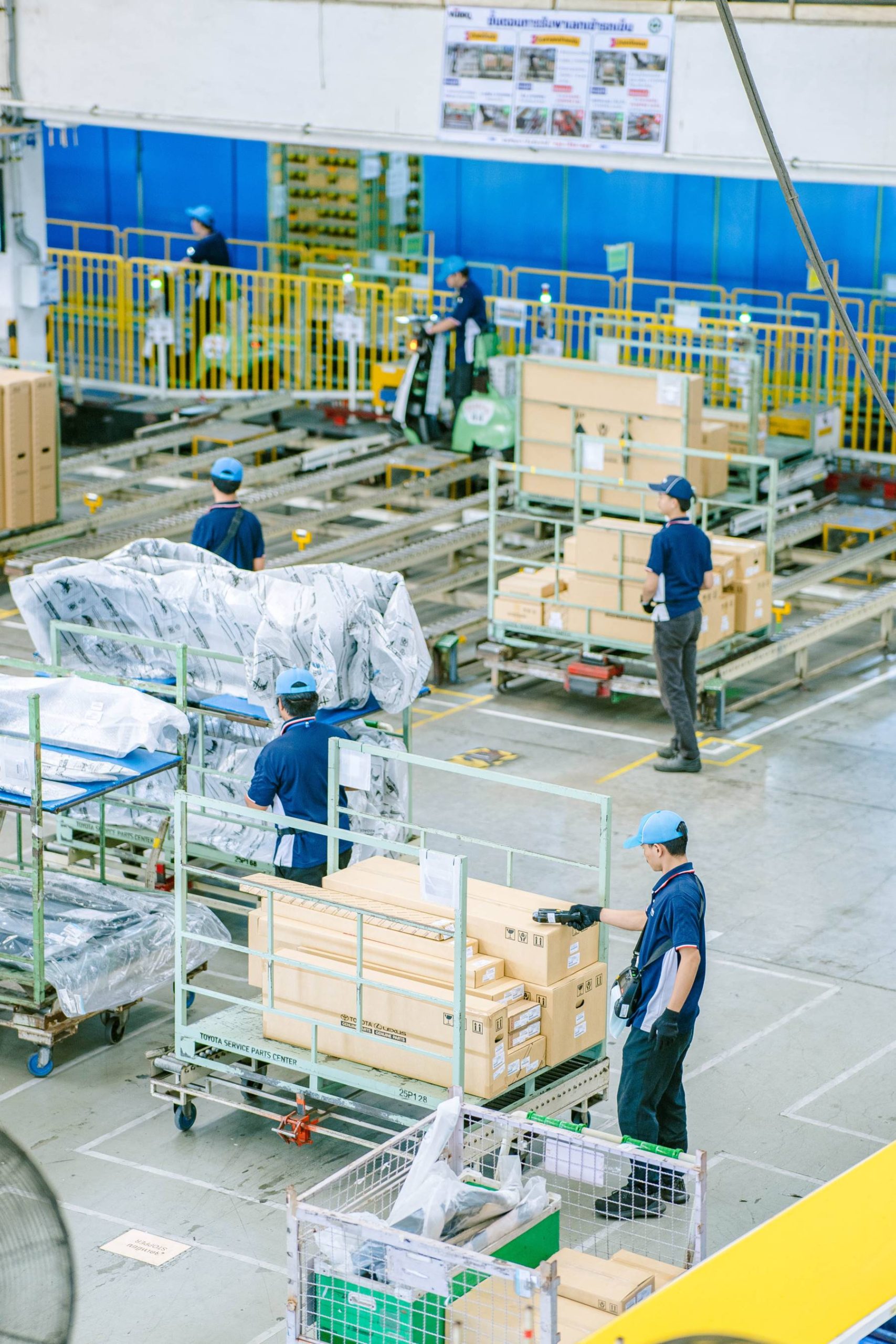 ศูนย์อะไหล่ดำเนินงานภายใต้ระบบจัดการชิ้นส่วนที่เป็นระเบียบแบบแผน โดยอ้างอิงกระบวนการมาตรฐานเครือข่ายศูนย์อะไหล่โตโยต้าทั่วโลก และสามารถจัดส่งอะไหล่จำนวนมากต่อวันเพื่อสนับสนุนงานซ่อมบำรุง ลดเวลาจอดรอซ่อม และช่วยให้ลูกค้าได้รับรถตามเวลานัดหมาย