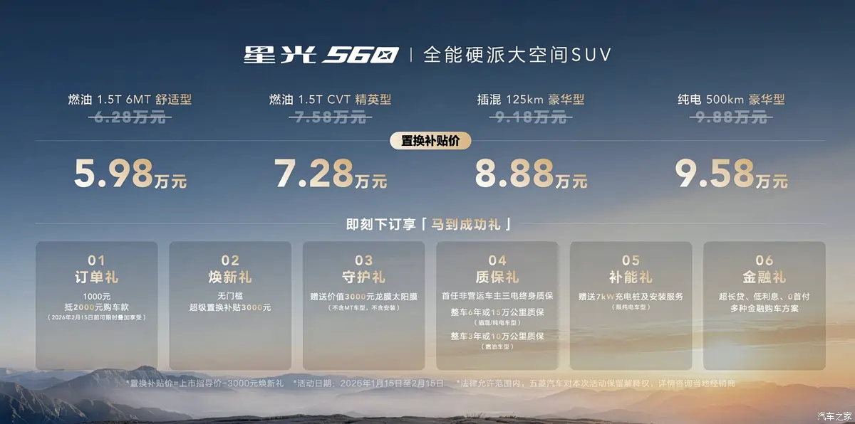15 มกราคม Wuling เปิดตัว Wuling Starlight 560 อย่างเป็นทางการในประเทศจีน รถยนต์ SUV ขนาดคอมแพ็กต์รุ่นใหม่ ที่ชูจุดขาย “หนึ่งรุ่น สามระบบขับเคลื่อน” ได้แก่ เครื่องยนต์สันดาป, ปลั๊กอินไฮบริด และไฟฟ้าล้วน ตอบโจทย์ผู้ใช้หลากหลายรูปแบบ โดยตัวรถพัฒนาบนแพลตฟอร์ม Tianyu Architecture D Platform เช่นเดียวกับ Starlight 730