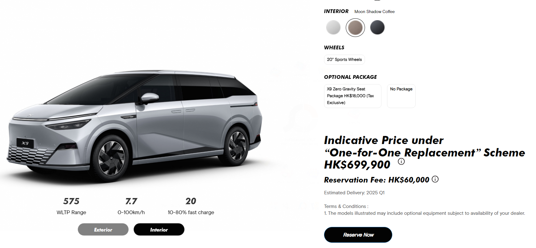 XPENG Hong Kong คาดว่า XPENG X9 จะอยู่ที่ ราคาจำหน่าย 659,900 – 699,900 ดอลลาร์ฮ่องกง หรือประมาณ 2.87 – 3.04 ล้านบาท