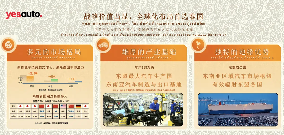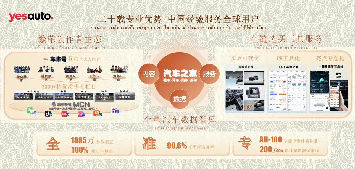 เมื่อวันที่ 24 มีนาคม 2026 ภายในงานบางกอก อินเตอร์เนชั่นแนล มอเตอร์โชว์ ณ ศูนย์แสดงสินค้าและการประชุม IMPACT เมืองทองธานี Autohome (汽车之家) ยักษ์ใหญ่ด้านแพลตฟอร์มเนื้อหารถยนต์จากจีน ได้จัดงานแถลงข่าวกลยุทธ์เนื้อหาในต่างประเทศ พร้อมประกาศเปิดตัว YesAuto แพลตฟอร์มระดับสากลอย่างเป็นทางการในประเทศไทย และเริ่มโครงการ “YesAuto Creator 100 Starlight Program” เพื่อสร้างระบบนิเวศเนื้อหารถยนต์ที่แข็งแกร่งในไทย