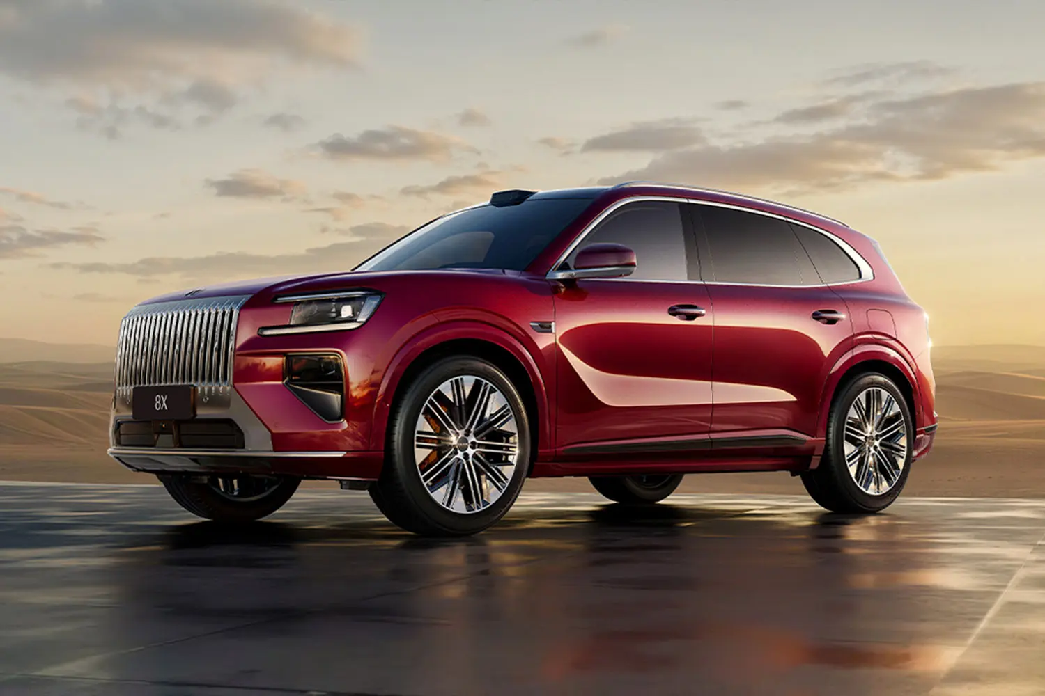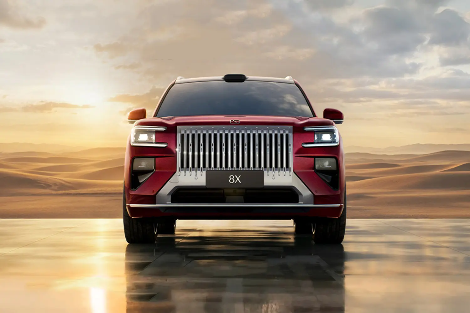 ในด้านการออกแบบ ZEEKR 8X ยังคงแนวทางเดียวกับ ZEEKR 9X กระจังหน้าขนาดใหญ่เน้นเส้นตรง พร้อมตกแต่งโครเมียม ไฟหน้าแบบแยกส่วน และช่องดักอากาศทรงสองตอน ทำให้ด้านหน้าดูแข็งแกร่งและจดจำได้ง่าย